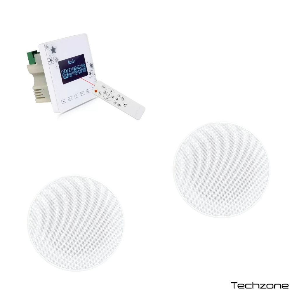 Комплект з 4х стельових колонок CELL 610 та підсилювача PAMP-60-BT CELL 610 Пасивна акустична трансляційна система. Тип монтажу Врізна, стельова. Конфігурація 1-смугова. НЧ 6,5”. Виводи трансформатора 100В 10 Вт/5 Вт. Опір 8 Ом. Чутливість 92 дБ. Діапазон відтворюваних частот 90 – 16 000 Гц. Матеріал корпусу АБС-пластик. Колір білий. Акустична система. Розміри 185x65 мм. Діаметр монтажного отвору 165 мм. Посадкова глибина 60 мм PAMP-60-BT Трансляційний підсилювач потужності 50Вт. Входи: 1 х мік., 1 х AUX. Виходи: 4-16 Ом, 100В, 1х AUX. Діапазон частот 40 Гц-18 кГц±0.5 дБ. Відношення сигнал/шум > 70 дБ. FM приймач, USB/SD програвач. Розмір: 300х230х120 мм. Вага 4 кг. Дане обладнання отримало сертифікат відповідності ДСНС України для використання в системах пожежного сповіщення.