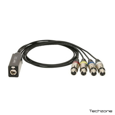 4-канальний вихідний адаптер Mic / Line / AES: передача 4 моно балансних аналогових аудіосигналів (Line, Mic, 48V), передача 4 цифрових аудіосигналів AES / EBU (4 стерео / 8 моно), передача чотирьох цифрових сигналів (DMX, MIDI) роз'єм 1: 1x etherCON (female), роз'єм 2: 4x XLR 3p. (Male), довжина кабелю: 0,8 м, корпус: 76 x 31 x 25 мм, колір кабелю: чорний