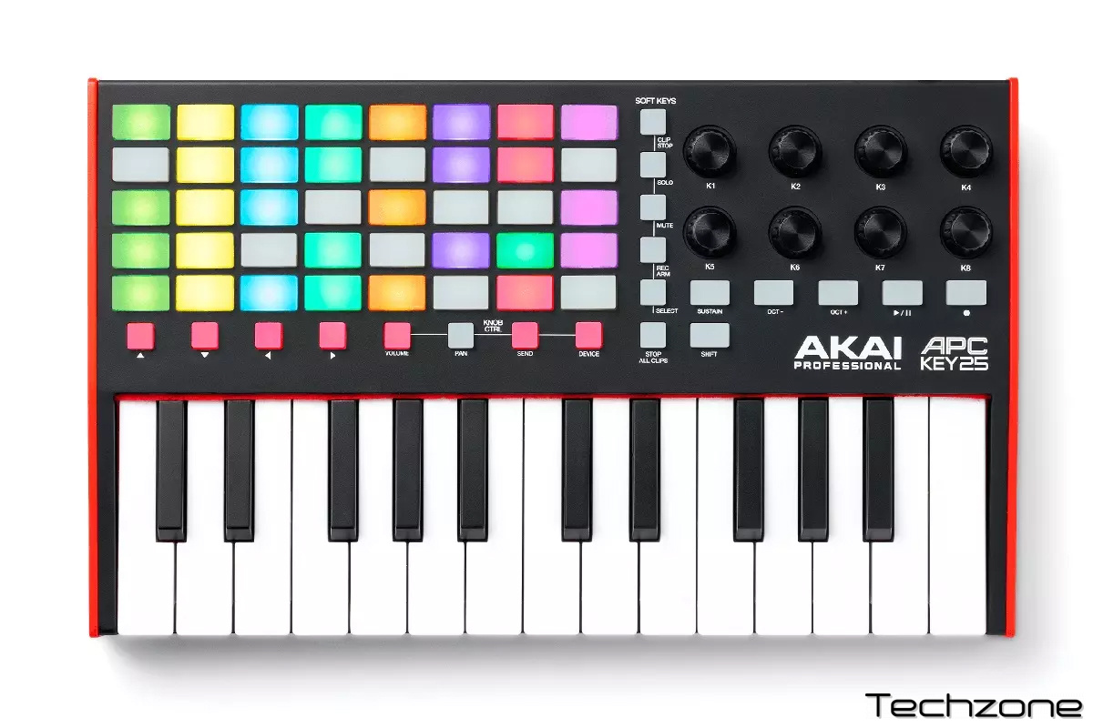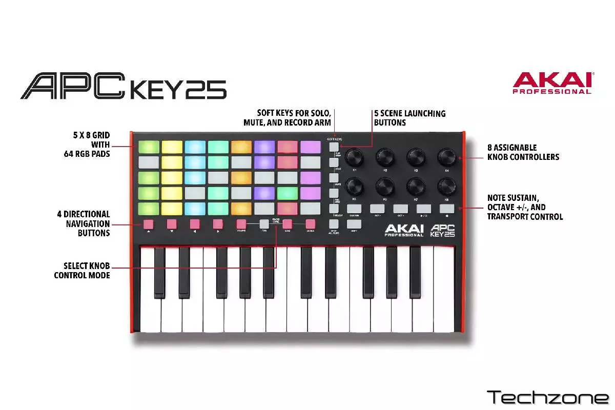 Основні особливості портативної MIDI клавіатури AKAI APC Key 25 MK II: Матриця 5x8 педів з 40 RGB-педами; 25-клавішна динамічна клавіатура 2-го покоління; 8 призначуваних ручок управління з обертом на 360° Endless; 4 режими роботи; Спеціальні кнопки запуску сцен; У комплект входить програмне забезпечення Ableton Live Lite для створення музики (Mac/PC).НовийAPC Key 25 mk2– це універсальний та компактний MIDI-клавіатурний контролер, який дає змогу виконувати та творити музику в будь-якому місці, забезпечуючи ідеальне поєднання запуску кліпів і створення композицій в Ableton Live. Втілюйте в життя свої оригінальні мелодії, акордові структури та багатошарові гармонійні ідеї за допомогоюAPC Key 25.40 яскравих педів з rgb-підсвічуваннямAPC Key 25 IIоснащений 40 новими RGB-педами для яскравого та точного відображення кліпів вашої сесії Ableton Live. У студії чи на сцені, матриця RGB-педів буде яскраво світитися. У потрібний момент впевнено запускайте та активуйте петлі, інструменти, вокал та багато іншого.Запустіть захопливий процес створення музикиAPC Key 25дозволяє запускати петлі, семпли, сцени Ableton і мелодії для найбільш фантазійних і надихаючих музичних виступів. 40 RGB-педів на налаштовуваній сітці 5x8 точно відображають кліпи з вашої Ableton Live Session і завжди знаходяться під рукою, забезпечуючи зручність навігації навіть у великих сесіях.Ваше мелодійне виконанняAPC Key 25автентично втілює ваші мелодійні ідеї. Насолоджуйтеся потужними інструментами Ableton і вигадуйте власну музику. Створюйте власні басові лінії за допомогою Hybrid 3 від AIR Technology та накладайте динамічні звуки фортепіано за допомогою віртуального інструменту Mini Grand. У поєднанні з робочим процесом Ableton із запуском сцен і кліпівAPC Key 25дає змогу додавати в треки унікальні перформанси.Клавіатура 2-го покоління – продуктивність і відчуттяAPC Keyоснащений 25 клавішами з динамічною клавіатурою Gen 2 для створення мелодійної та гармонійної музики. Грайте свої власні акорди, арпеджіо, соло та саундскейпи за допомогою універсальних клавіш. Використовуйте кнопки Octave Up/Down для розширення діапазону нот. Спеціальна кнопка Sustain додає просторовості та розміреності вашій грі, гарантуючи, щоAPC Key 25готовий до будь-якого музичного моменту.Більш потужний досвід роботи з AbletonНасолоджуйтеся серйозним ручним керуванням для потужної творчої роботи в Ableton Live.APC Key 25має 8 призначуваних ручок управління з обертом на 360° Endless, панорамування, вставки ефектів і багато іншого для плавного, інтуїтивно зрозумілого керування вашими сесіями. Налаштуйте ревербератори, розгорніть фільтри або напишіть автоматизацію, яка пожвавить вашу музику. Миттєво формуйте звучання за допомогою призначуваних ручок з можливістю обертання на 360 градусів.Точне інтуїтивне управлінняСтворюйте свої власні звуки з легкістю. У режимі Device Mode ручкиAPC Key 25автоматично зіставляються з вісьмома макро регуляторами пристрою Ableton Live. Керуйте кількома параметрами за допомогою однієї ручки для створення абсолютно інноваційних звуків. Ще більше можливостей для практичного управління дають софт-клавіші для легкого доступу до функцій Solo, Mute, Stop і Record arm.Регулятори перемикання, сустейна й октавиAPC Key 25оснащений спеціальними регуляторами для повної інтеграції в Ableton. Регулятори перемикання дають змогу швидко фіксувати нові ідеї та миттєво прослуховувати композицію. Октавний регулятор дає доступ до 10-октавного діапаз
