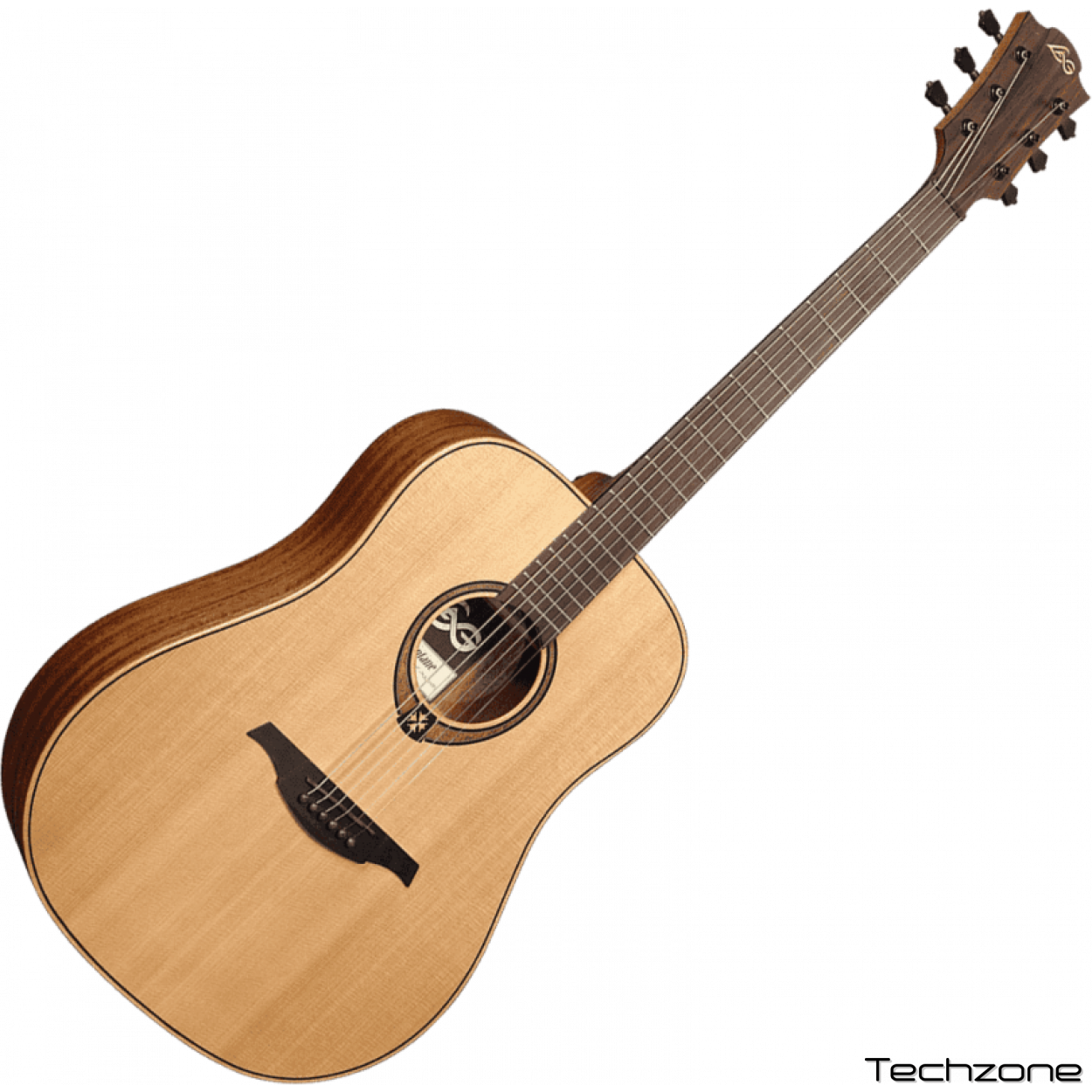 - Голова грифа: Браунвуд, інкрустація логотипа Lag виконана кленом