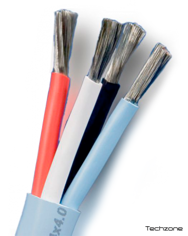 Високоякісний кабель з чотирма олов'яними багатожильними провідниками, з високим кутом скручування для оптимальної шумозаглушення і більш низькою індуктивності.