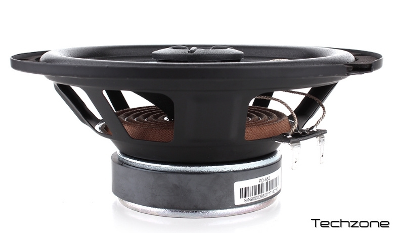Корзина стальная штампованная, имеет круглую форму с типоразмером 6,5 дюймов, это 165 мм, и устойчивая к возникновению резонанса. Диффузор динамика, изготовленный из прессованной целлюлозы, серого цвета, отличается натуральным звучанием и ровной подачей, он подвешен и отцентрирован с помощью бутилкаучукового подвеса. Встроенный твитер сбалансированный, для кристальных высоких нот, с PEI мембраной и ферритовым магнитом. Его размер 0,5 дюйма, это 13 мм.