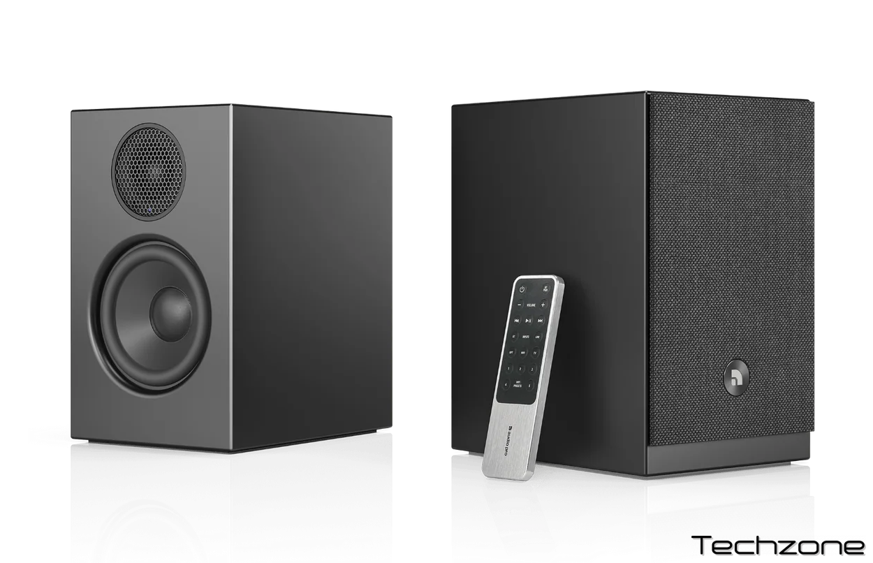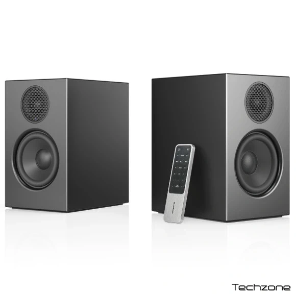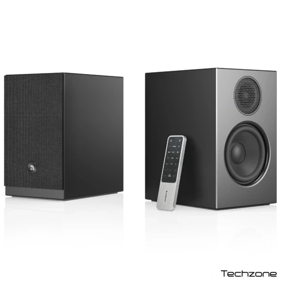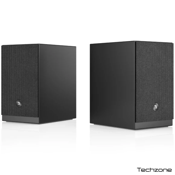 Корпус з МДФ, пофарбований у стильний білий або чорний колір, або, якщо ви віддаєте перевагу ексклюзивному шпону горіха, природно вписується у ваш інтер'єр. Тканинні фасади кріпляться за допомогою магнітів і їх можна легко зняти, щоб отримати більш сучасний вигляд, якщо вам більше подобається такий дизайн. A28 W пристосований для настінного кріплення (кронштейни продаються окремо), але також легко поміщається на полиці.