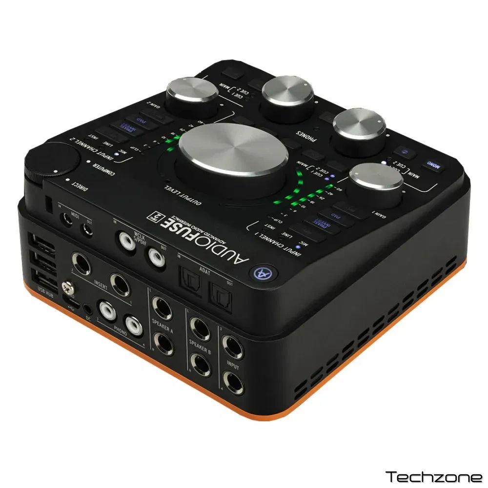 Завдяки високоточним 24-бітовим АЦ/ЦА-конвертерам з частотою дискретизації до 192 кГц та повністю симетричній схемотехніці без конденсаторів у трактi, AudioFuse забезпечує студійну якість запису навіть у домашніх умовах. Інтерфейс підтримує майже всі типи підключень: від XLR та TRS до RCA, ADAT, S/PDIF, Word Clock та MIDI, а також має вбудований USB-хаб на 3 порти.