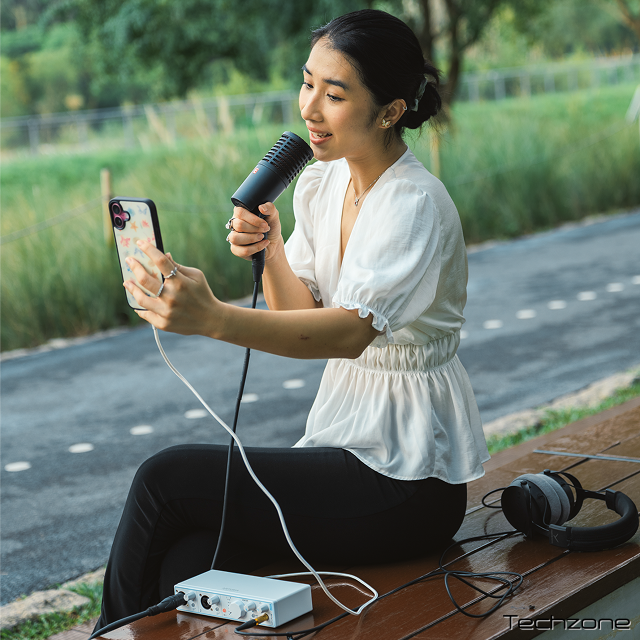 - Для подкастерів: Ефірна якість голосу будь-де. Підключайте конденсаторні мікрофони з фантомним живленням 48V, контролюйте рівні за допомогою наочних індикаторів і використовуйте моніторинг без затримки — як на мобільних пристроях, так і на комп’ютері.