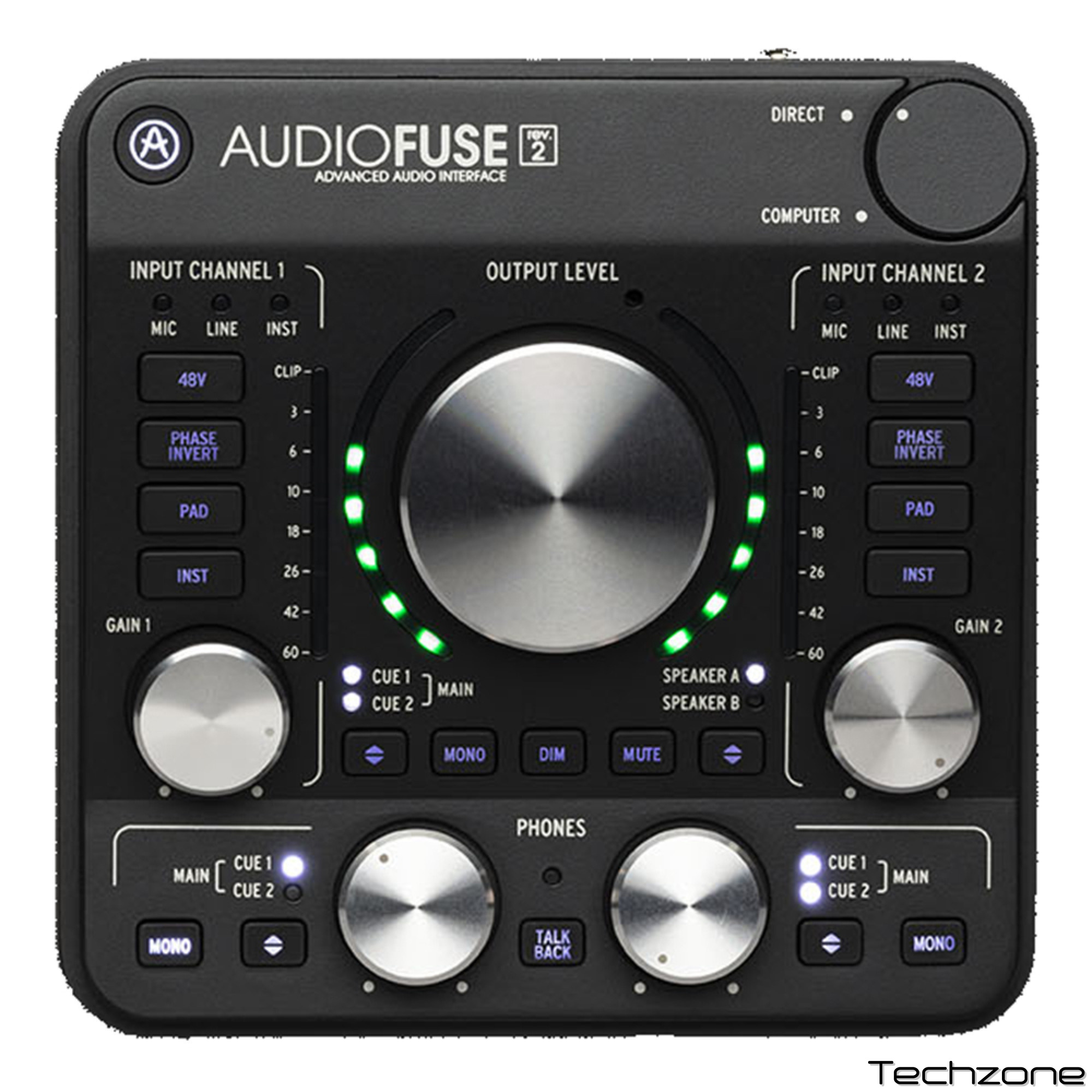 Хочете змінити коефіцієнт посилення на 1 каналі? Поверніть ручку. Потрібно переключити монітори? Натисніть на кнопку. Якщо Ви хочете збільшити гучність в одних з навушників – просто змістіть відповідний регулятор. AudioFuse не має меню. Нічого не приховано, кожен елемент управління знаходиться у Ваших руках, творчий процес не переривається.