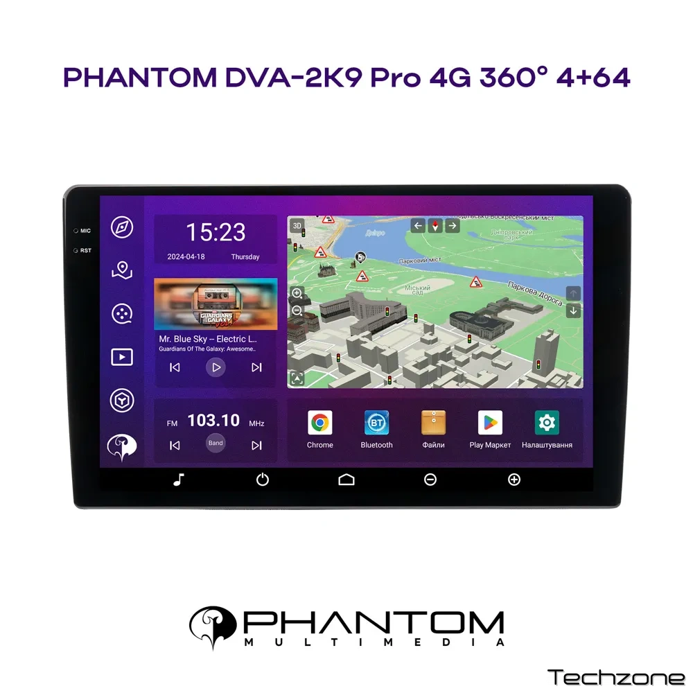 Завдяки наявності в PHANTOM DVA-2K9 Pro 4G 360° 4+64 вбудованого модуля Bluetooth з виносним мікрофоном у комплекті для користувача стають доступні такі можливості: приймати і здійснювати дзвінки з мультимедійного центру, телефонна книга, список вхідних і вихідних дзвінків, прослуховування музики з телефону (A2DP).