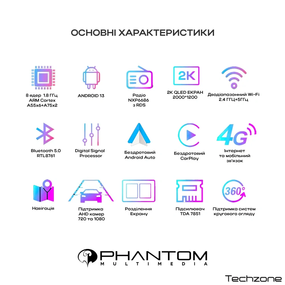 Екран: 9″ сенсорний 2K QLED 2.5D дисплей, multi-touch, 2000×1200.