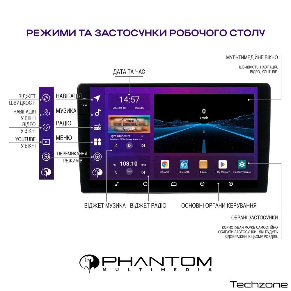 Вбудований GPS модуль та операційна система Android 13 дозволяють встановити будь-яку навігаційну програму на вибір – Google maps, Navitel, Waze, iGo та інші.