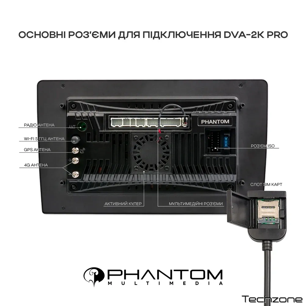– Відео вихід – опціонально, за допомогою відеоадаптера PHANTOM VA-01