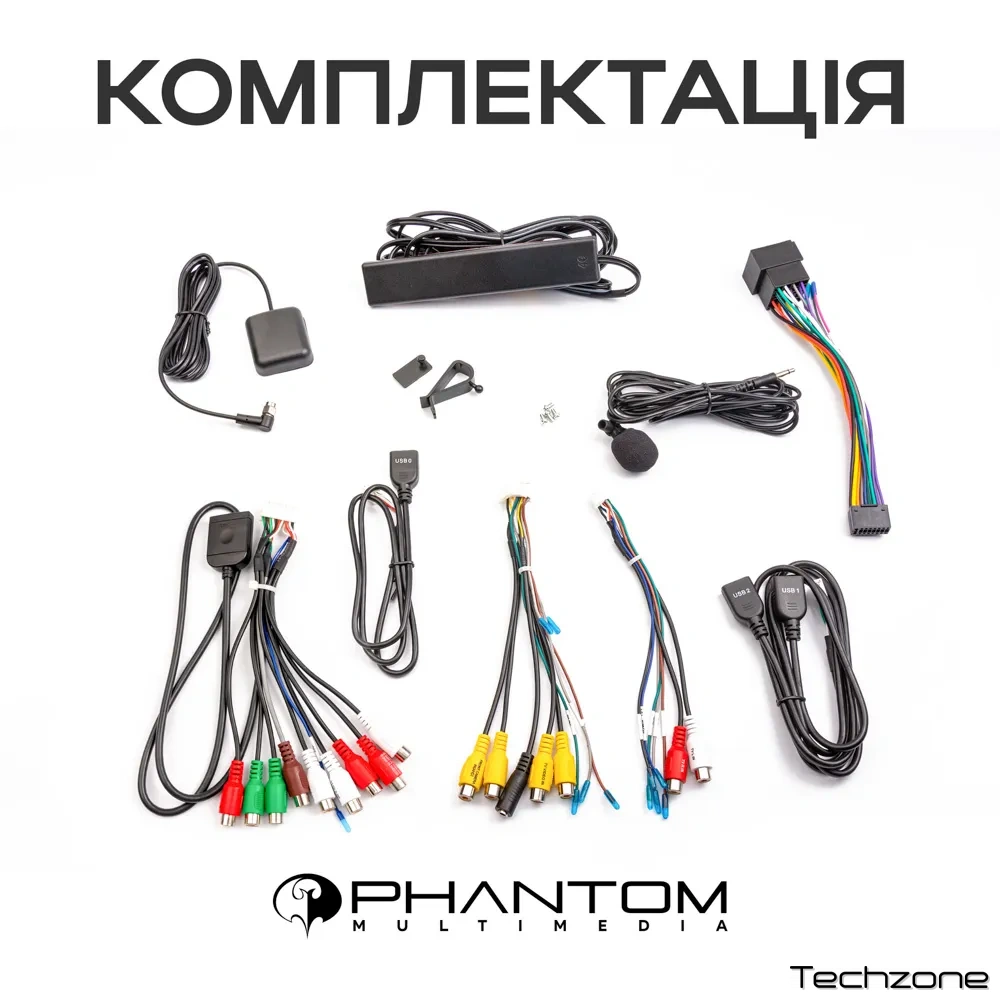 - Кабель з двома мультимедійними роз’ємами «USB 1», «USB 2».