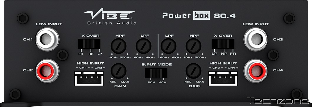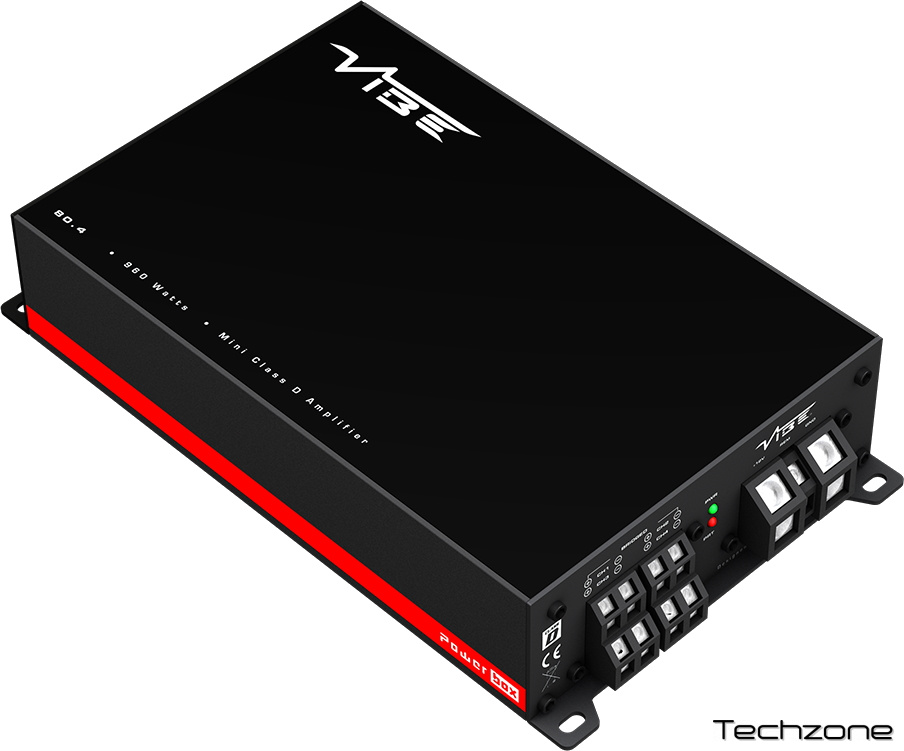 Vibe POWERBOX80.4M — це компактний 4-канальний підсилювач класу D, що входить до лінійки "Mini" від британського бренду VIBE Audio. Завдяки своїм мініатюрним розмірам він ідеально підходить для прихованого встановлення, наприклад, у бардачок або під сидіння.
