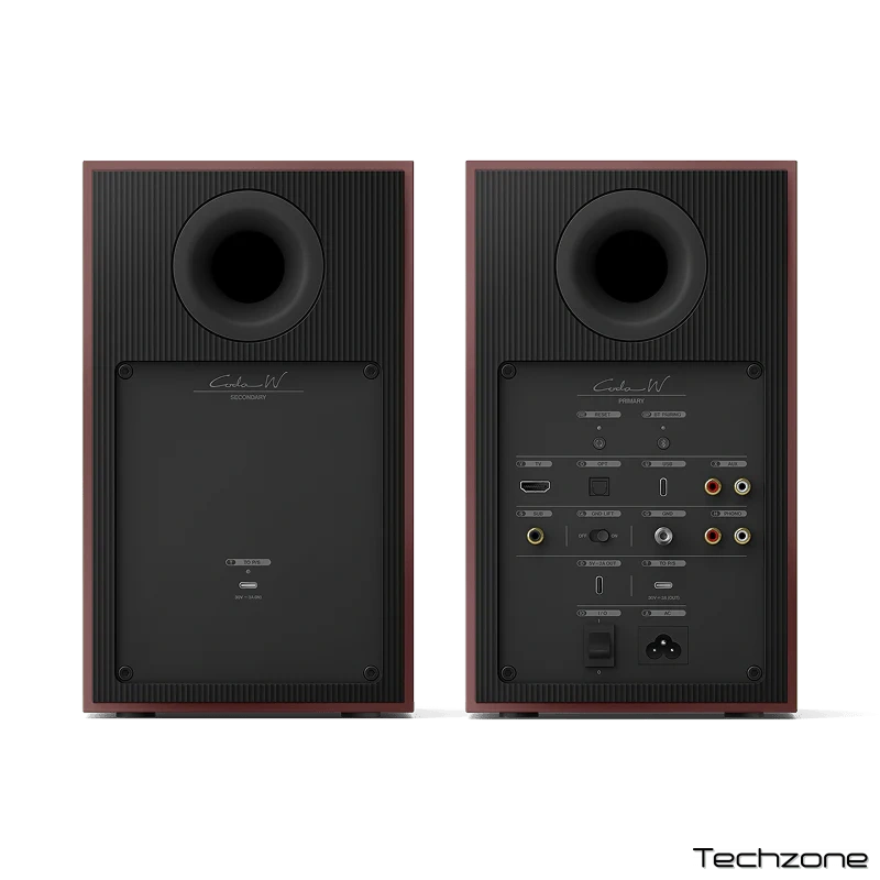 Колонки оснащені коаксіальними драйверами Uni‑Q 12-го покоління, що забезпечують рівномірне розповсюдження звуку та детальний саундстейдж. Система підтримує HDMI ARC, цифровий оптичний та USB‑C входи, аналогові RCA LINE і Phono (MM), а також бездротове підключення через Bluetooth 5.4 із підтримкою aptX Adaptive і aptX Lossless. Частотний діапазон — 41 Гц–20 кГц, максимальний рівень звуку — 102 дБ.