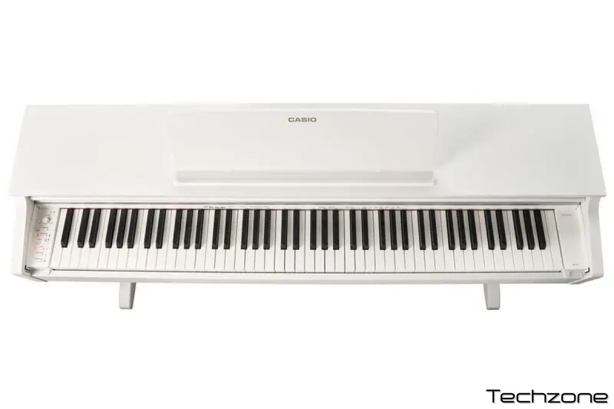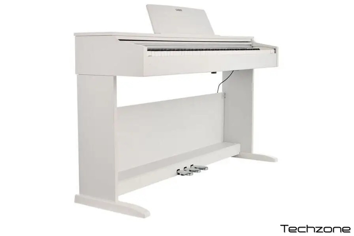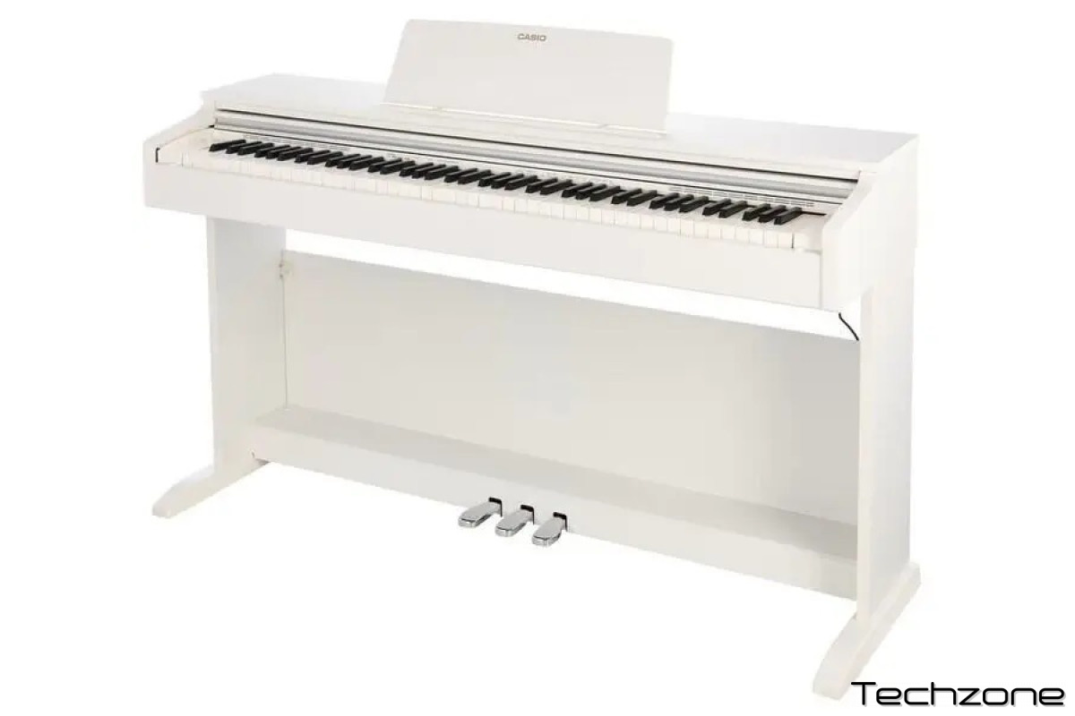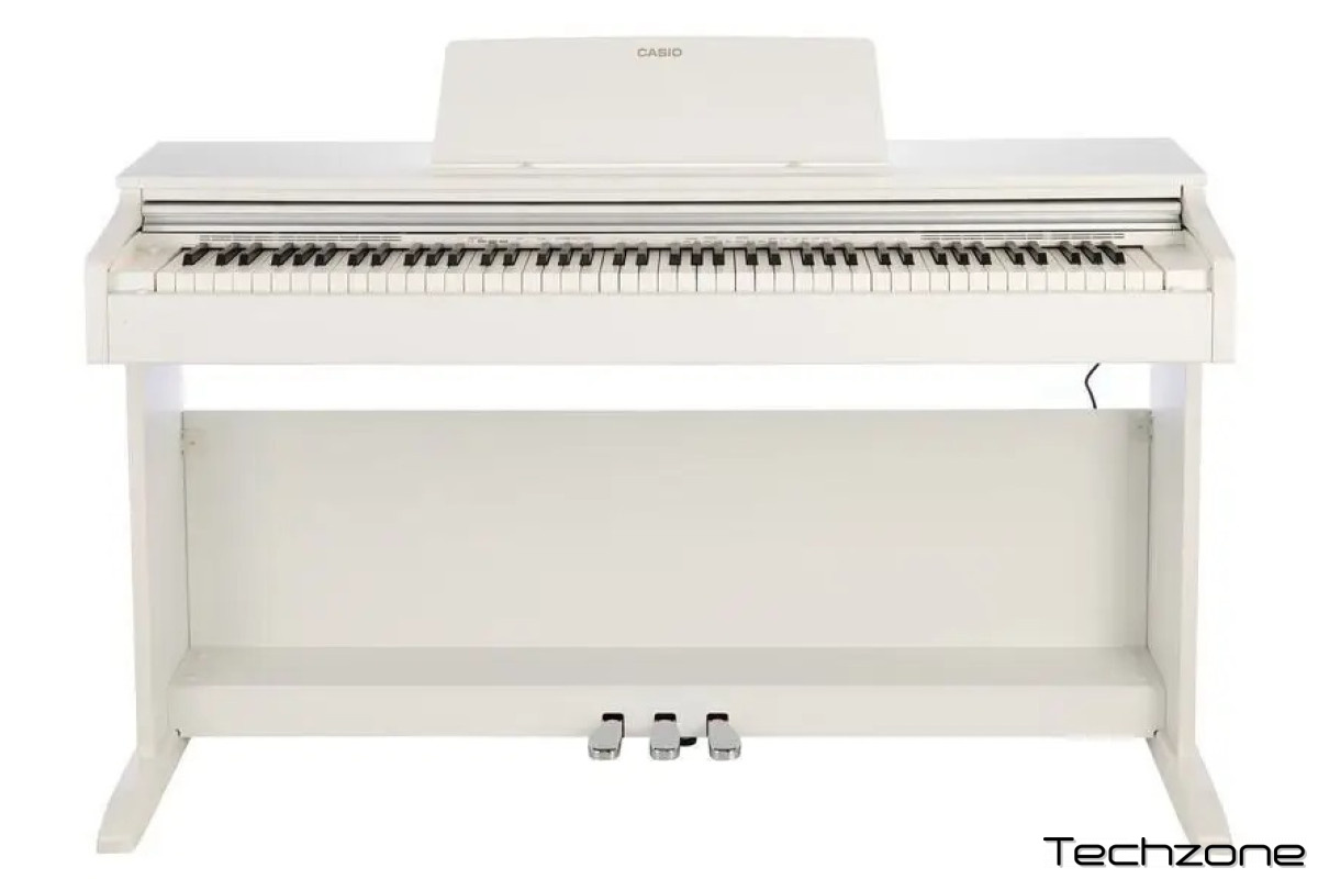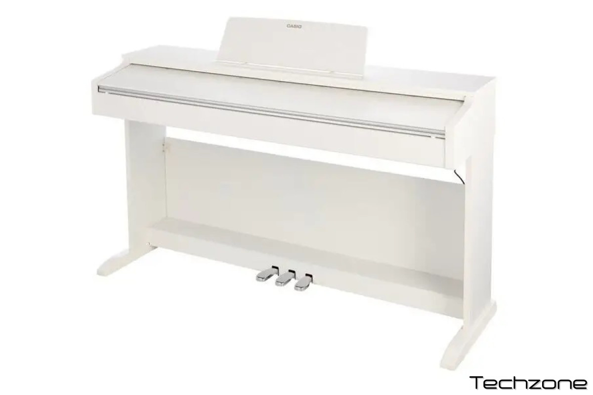 Основні особливості Casio AP-270WE:Удосконалена і доповнена повнозважена клавіатура Tri-Sensor Scaled Hammer Action II. Можливість підключення смартфонів на операційних системах iOS та Android. 22 тембри концертних роялів. Інтуїтивна панель управління. Поліфонія в 192 голоси. Акустична система представлена двома динаміками потужністю по 8 Вт. 3 вбудовані педалі: Damper, Soft, Sostenuto. У пам'яті 60 композицій для гри з оркестром. 2-доріжковий MIDI-рекордер. Ефекти: 4 х реверберація, 4 х хорус, 3 х яскравість, DSP пресети для деяких тонів. Підключення через USB для запису. Має функції поділу клавіатури. Роз'єми для підключення навушників.Популярна лінійка цифрових піаніноCasio Celvianoпоповнилася новою моделлю –Casio AP-270. Новинку, представлену на виставці NAMM 2017 можна сміливо назвати втіленням усіх кращих якостей серіїAP-200. Розробники постаралися об'єднати всі переваги попередніх моделей в єдине ціле і додати до цього єдиного цілого ще дещо, щоб створити новий інструмент. І це їм вдалося!Casio AP-270не залишить байдужими навіть вибагливих піаністів!Дизайн та зовнішній виглядВідмінності новинки від попередників впадають у вічі при першому ж погляді. Ті, хто мав справу з попередніми моделями, відразу звернуть увагу на змінений дизайн корпусу. Зазнала змін та панель кнопок. Якщо раніше вона розташовувалась над клавіатурою, то тепер знаходиться ліворуч від неї. Компактні розміри роблять піаніно не лише музичним інструментом, а й прикрасою приміщення.КлавіатураКлавіатура з молоточковою механікою, ретельно відкалібрована та покрита синтетичною слоновою кісткою, має три регульовані рівні чутливості, від легкого до важкого. Завдяки цій властивості виконавець може підлаштувати інструмент під себе з урахуванням свого рівня майстерності та індивідуальних уподобань. Покриття клавіш не тільки надає піаніно благородного зовнішнього вигляду, але й перешкоджає ковзанню пальців, коли ті потіють під час гри. Все це – клавіатура нового покоління Tri-Sensor Scaled Hammer Action II.Тон-генератор, тембри та інші звукиДжерелом звукуCasio AP-270є тон-генератор AiR. Це і 192-нотна поліфонія (для порівняння – попередник новинки,Casio AP-260, вже знятий з виробництва, мав 128-нотну поліфонію), і симулятор демпферного резонансу, і 22 фортепіанних і рояльних тембри (на три більше, ніж було у більш старої моделі), та стереофонічне звучання фортепіанних семплів. Крім того,Casio AP-270має чотири види хорусу та стільки ж видів реверберації для створення просторових ефектів. Також є функція накладання тембрів, що дозволяє грати двома звуками одночасно.Навчання та записСпеціально для навчання в інструменті є 60 вбудованих композицій та можливість відключати партію правої та лівої руки. Метроном із широким діапазоном темпу дозволяє розучувати партії, поступово нарощуючи швидкість. Ви можете займатися з викладачем у реальному часі, розділивши клавіатуру на дві частини. За допомогою дводоріжкового секвенсера можна записати або партію кожної руки окремо, або дві доріжки зіграні різними тембрами.ПосиленняЦифрове піаніноCasio AP-270оснащене акустичною системою з двома динаміками по 8 Вт кожен. Але ви можете займатися в навушниках, для яких на інструменті є два виходи.Додаткові можливостіЗа допомогою порту USB можна підключити інструмент до комп'ютера для використання як MIDI-клавіатури або для розширення функціонала. Останнє можливо також завдяки сумісн