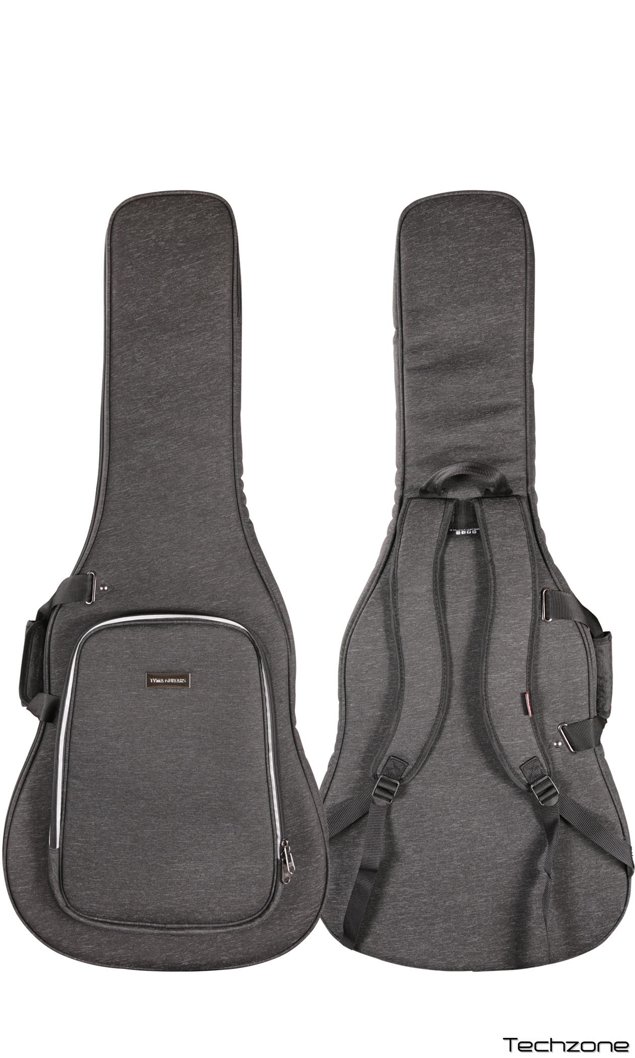 Tyma TM30-DA (Grey) - преміальний чохол-кофр для акустичної гітари, що виготовлений із матеріалів, що відповідають екологічним стандартам ЄС. Від зовнішньої частини до внутрішньої та підкладки, всі матеріали є абсолютно екологічними та безпечними. Зовнішня частина виготовлена з інноваційної та екологічно чистої суміші поліестеру Snowflake 900D, що забезпечує стильний та привабливий вигляд, водночас є водонепроникною, пилонепроникною та зносостійкою. Екологічно чистий процес фарбування з низьким рівнем викидів забезпечує чудову стійкість кольору. Внутрішня підкладка виготовлена з м'якого плюшевого матеріалу.
