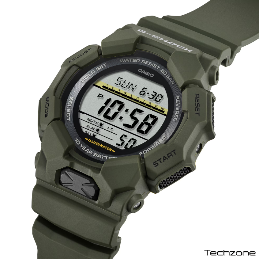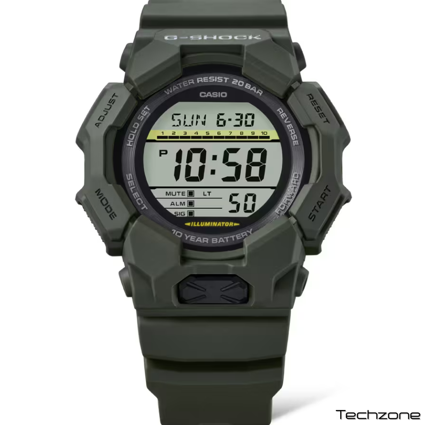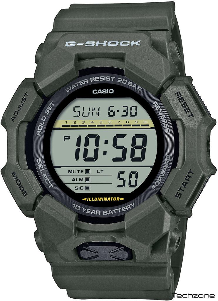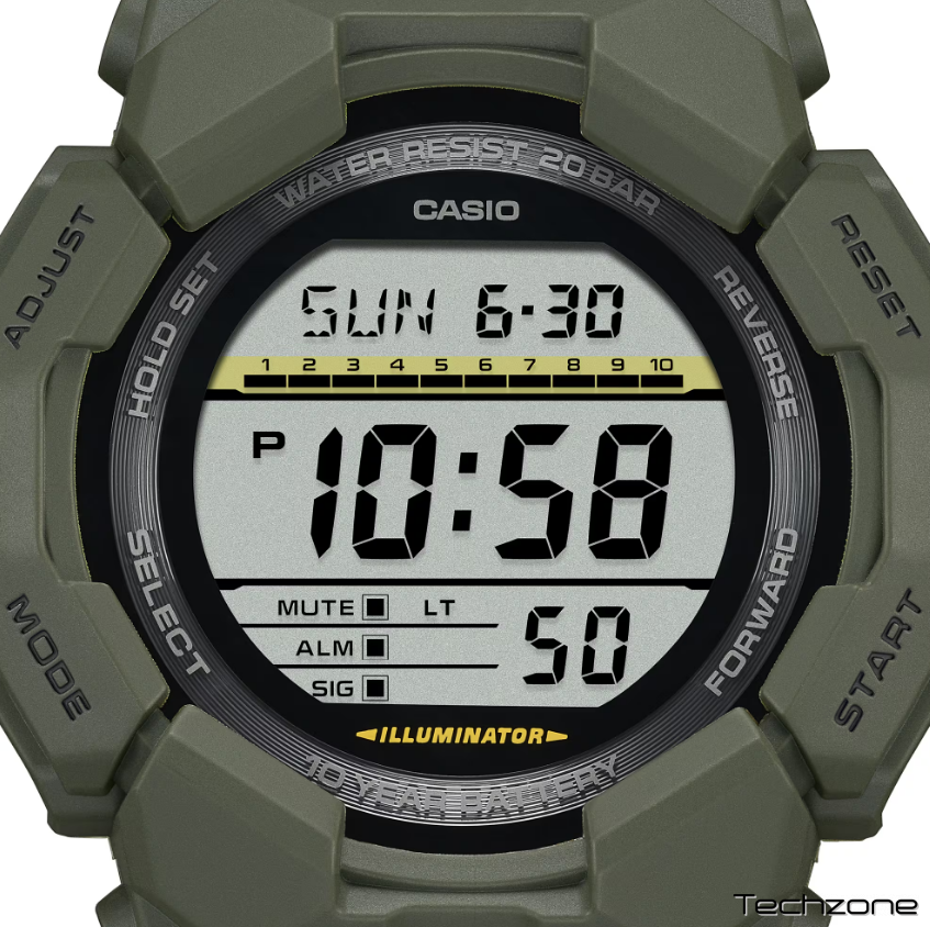 Цифровий GD-010 пропонує зручні функції, такі як світовий час і секундомір, а також яскравий світлодіодний індикатор, який легко активувати за допомогою великої кнопки на передній панелі корпусу, що забезпечує видимість навіть у темряві.