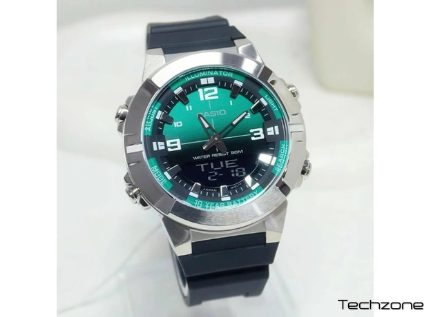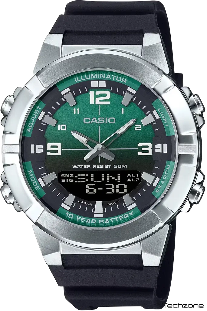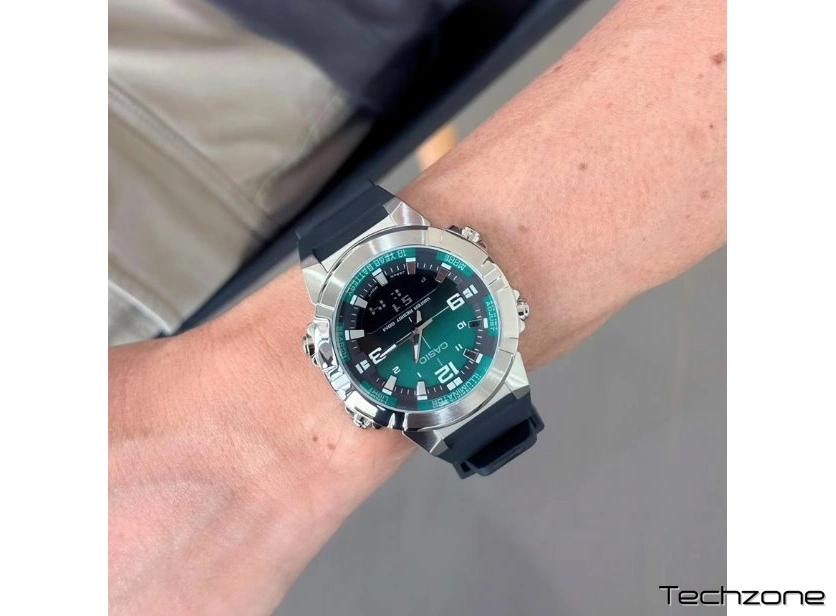 Цей годинник — ідеальний вибір для активних людей, які цінують надійність класичних матеріалів у поєднанні з сучасними технологіями. Модель виконана у масивному корпусі з нержавіючої сталі сріблястого кольору, що надає їй солідності, а контрастний зелений циферблат додає індивідуальності та стилю.