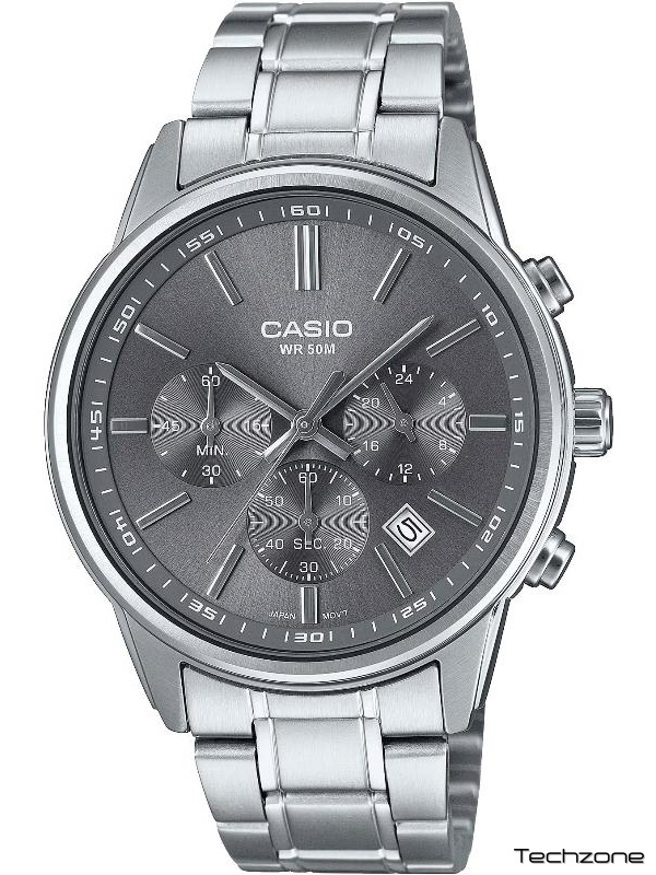 Класний металевий аналоговий годинник зі спортивним дизайном хронографа, який вам подобається, та детальним дисплеєм, який вам потрібен. Три вбудовані циферблати відображають 24-годинний час, секундомір та хвилинний секундомір. Водонепроникність до 50 метрів позбавить вас турбот навіть у дощові дні.