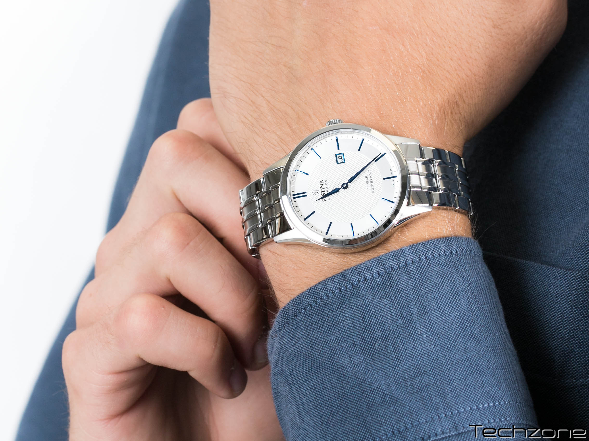 Корпус із нержавіючої сталі має діаметр 40 мм і висоту 6,7 мм, що робить його витонченим і зручним для щоденного використання. Сріблястий циферблат гармонійно поєднується з твердою задньою кришкою та сріблястим корпусом, створюючи класичний образ.
