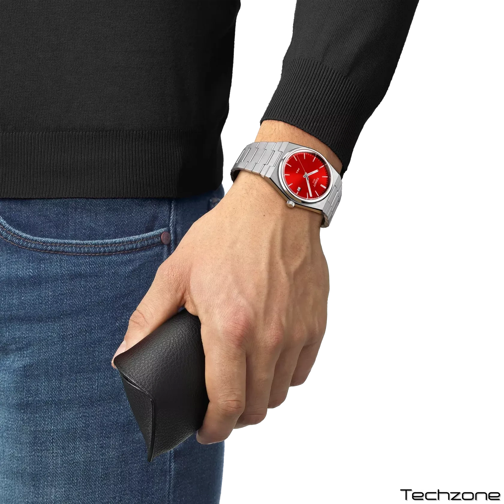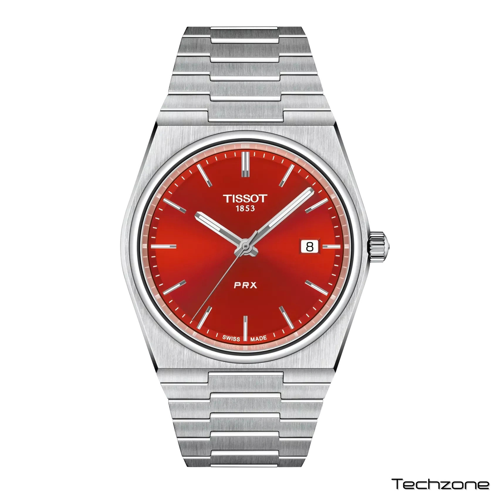 Швейцарський годинник Tissot PRX Quartz 40mm T137.410.11.421.00 являє собою елегантну модель, що поєднує в собі класичний дизайн 1970-х років та сучасні технології. Ця модель є частиною колекції T-Classic і призначена для чоловіків, які цінують стиль та точність. Корпус виготовлений із нержавіючої сталі 316L. Діаметр корпусу становить 40 мм, товщина – 10,4 мм, ширина між вушками – 12 мм. Циферблат чоловічого годинника Tissot PRX Quartz 40mm насиченого червоного кольору з індексами та стрілками, покритими люмінесцентним складом Super-LumiNova®, що забезпечує гарну видимість в умовах низького освітлення, а сапфірове з покриттям антивідблиску, стійке до подряпин. Інтегрований браслет з нержавіючої сталі 316L із системою швидкої заміни та застібкою-метеликом з кнопками. Ця кварцова модель з водонепроникністю до 10 бар оснащена датою та індикатором закінчення заряду батареї (E.O.L.).