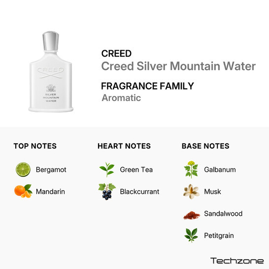 Дивовижні парфуми поміщені в сліпучий білий флакон, що нагадує вершину Швейцарських Альп, на якій лежить чистий незайманий сніг. Освіжальний, наче чистий гірський водоспад прохолодним весняним ранком, Silver Mountain Water обов'язково зачарує вас і стане одним з найулюбленіших ароматів.