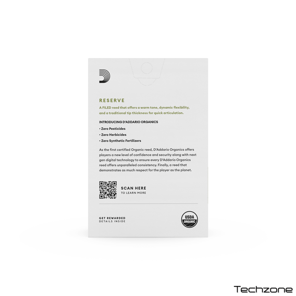 Тростини для альт саксофона серія Organic Reserve Представляємо нову еру тростин для саксофона! Завдяки відданості музикантам та турботі о планеті, органічні тростини D'Addario пропонують неперевершену гру без хімікатів, пестицидів або синтетичних добрив. Від поля до фінальної обробки, вони відповідають стандартам сертифікації органічної продукції Міністерства сільського господарства США, зберігаючи при цьому їхнє французьке коріння. Ці тростини постачаються в абсолютно новому паперовому пакуванні, що значно зменшує кількість пластикових відходів і усуває майже 32 тисячі кілограмів пластикових відходів щороку. Серії тростин Reserve і Select Jazz - це лише перший крок у нашому шляху, до 2025 року ми плануємо зробити всі наші продукти з очерету на 100% сертифікованими органічними. Тростини серії Organic Reserve виготовлені з очерету, вирощеного в природних умовах на закордонних плантаціях, що належать компанії D'Addario. Саме фахівці D'Addario розробили першу високоточну систему, що дає змогу робити цифрові вимірювання і геометрично точне обрізання кожної тростини. Завдяки цьому тростини Reserve відрізняються чудовою надійністю і відмінним звучанням.Стовщена спинка забезпечує динамічне універсальне багате та м'яке звучання у всіх регістрах. Особливий профіль зрізу тростини надає їй покращений відгук, а традиційна товщина кінчика полегшує артикулювання. Особливості: Товщина: 3.0 Набір: 10 шт Міцне резонансне звучання Стовщена спинка Стовщена пружина Французький зріз (Filed) Прекрасно підходять для просунутих студентів та професійних музикантів