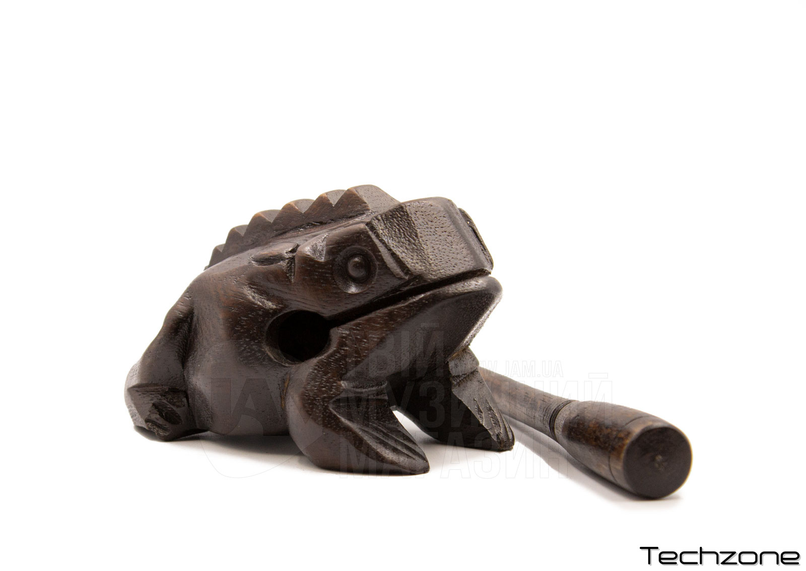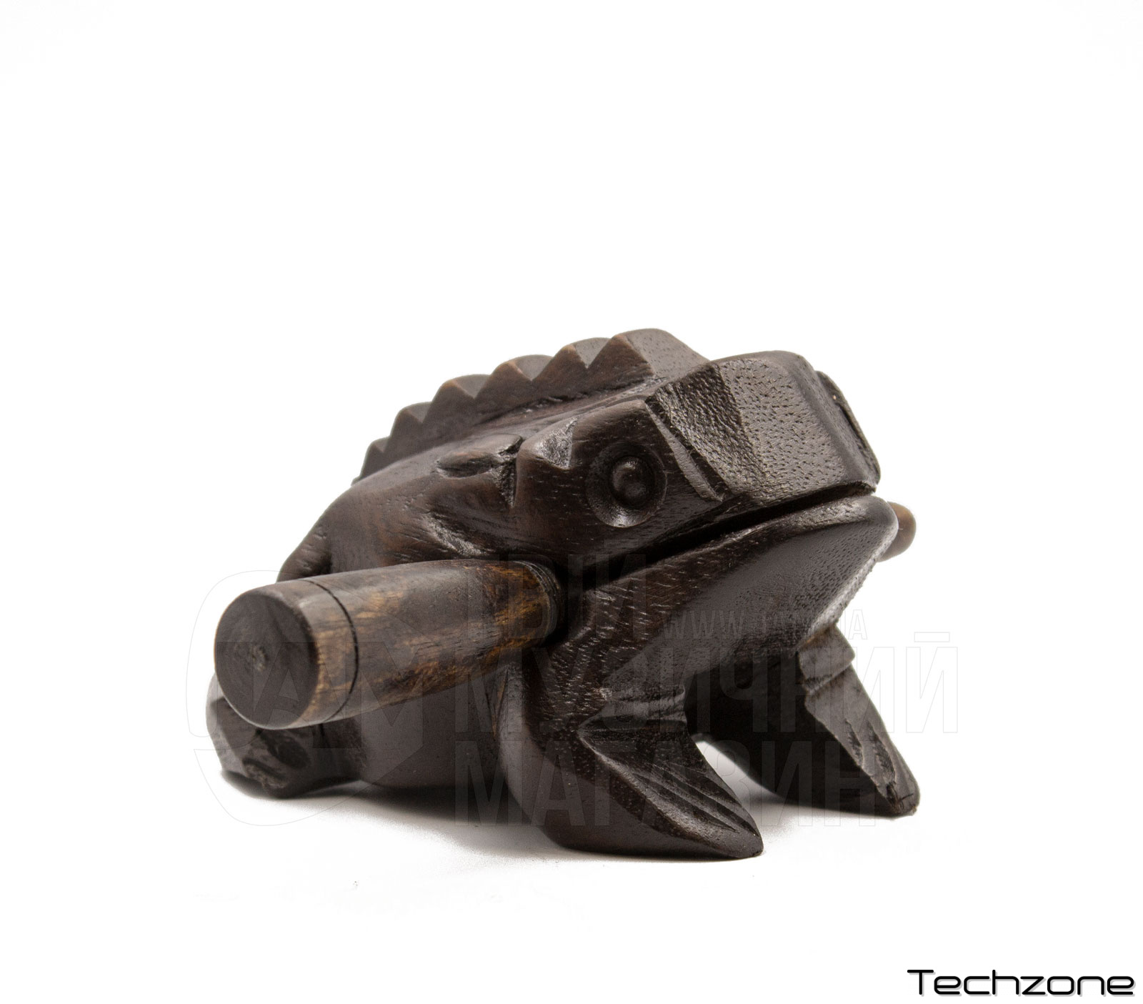 Дерев'яний перкусійний блок/гуїро у формі жаби Цей дерев’яний перкусійний інструмент-жаба стане чудовим подарунком не лише для музикантів будь-якого віку та статі. Просто проведіть паличкою-бітером по спинці жаби, щоб відтворити яскраве звучання, подібне до квакання, або стукайте проміж очима, якщо хочете використовувати її як тон-блок. А ще така жабка стане чудовим елементом декору для будь-якого приміщення. Розмір: 4" (10,2см) Колір: темно-коричневий Бітер у комплекті Довжина бітера: 16см Загальні розміри: 12х8х8см