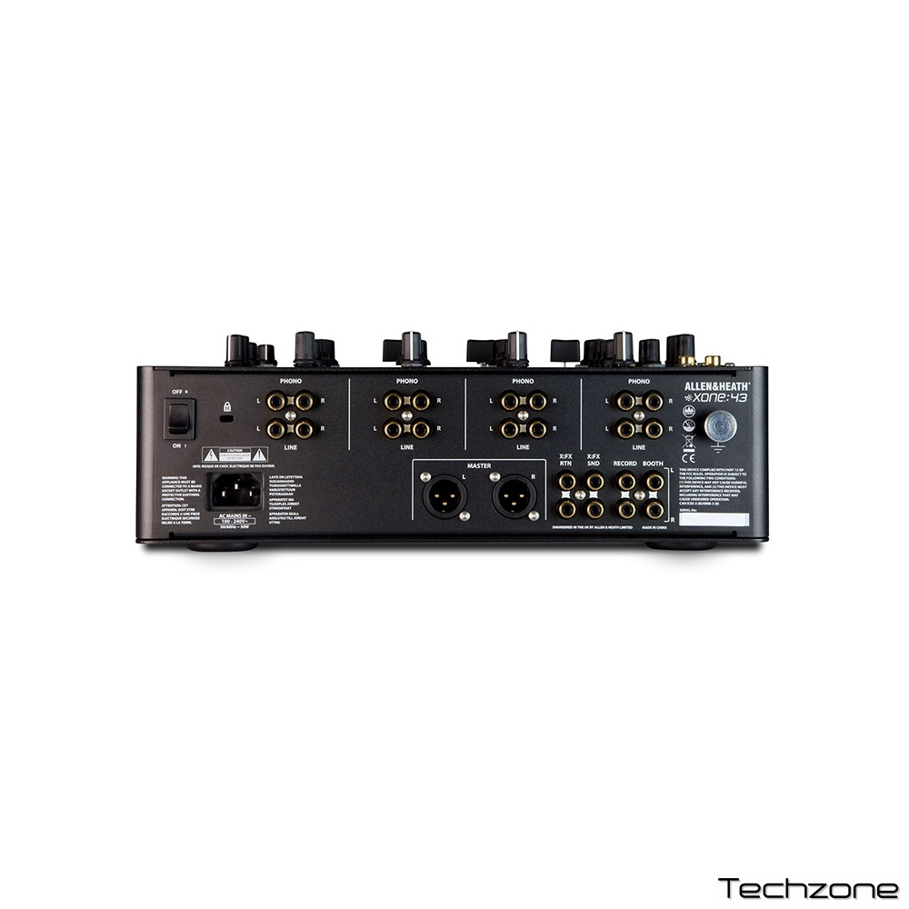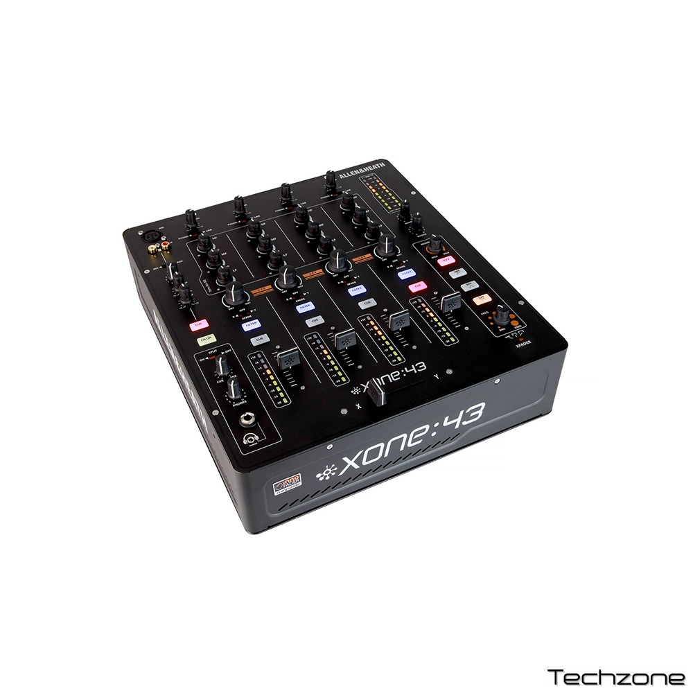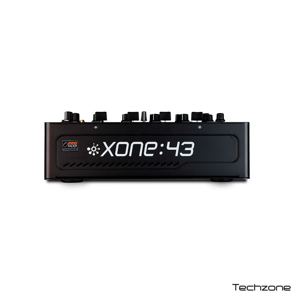 XONE: 43 - аналоговий DJ мікшер оснащений 4-ма стерео каналами і окремим каналом для підключення мікрофона. Основні характеристики: 4 канали з фоно / лінійними входами, Система фільтрів VCF, 3-ех смуговий еквалайзер, петля для зовнішніх ефектів (Посил / Повернення), Мікрофонний вхід з балансні XLR і 2-смуговим еквалайзером, Балансний основний вихід з роз'ємом XLR, Вихід для запису, 2 виходи на навушники (3,5 мм і ¼ дюйма), Плавні канальні фейдери VCA, Змінний кроссфейдер сумісний з Innofader, 9-сегментний індикатор рівня сигналу. Розміри: 320 х 370 х 110 мм; Вага: 5.1 кг.