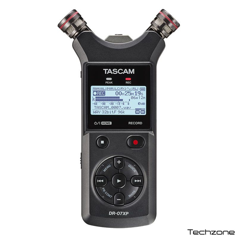 Tascam DR-07XP - рекордер дуже компактний, він вміщується навіть просто у кишені й для запису у мобільному режимі підходить якнайкраще. Модель оснащена точкою кріплення на штатив і має налаштовуваний триступеневий фільтр низьких частот, котрим можна ефективно усунути зайві шуми, та автоматичний тон-генератор, що істотно спрощує синхронізацію звуку з відео на етапі пост-продакшину.