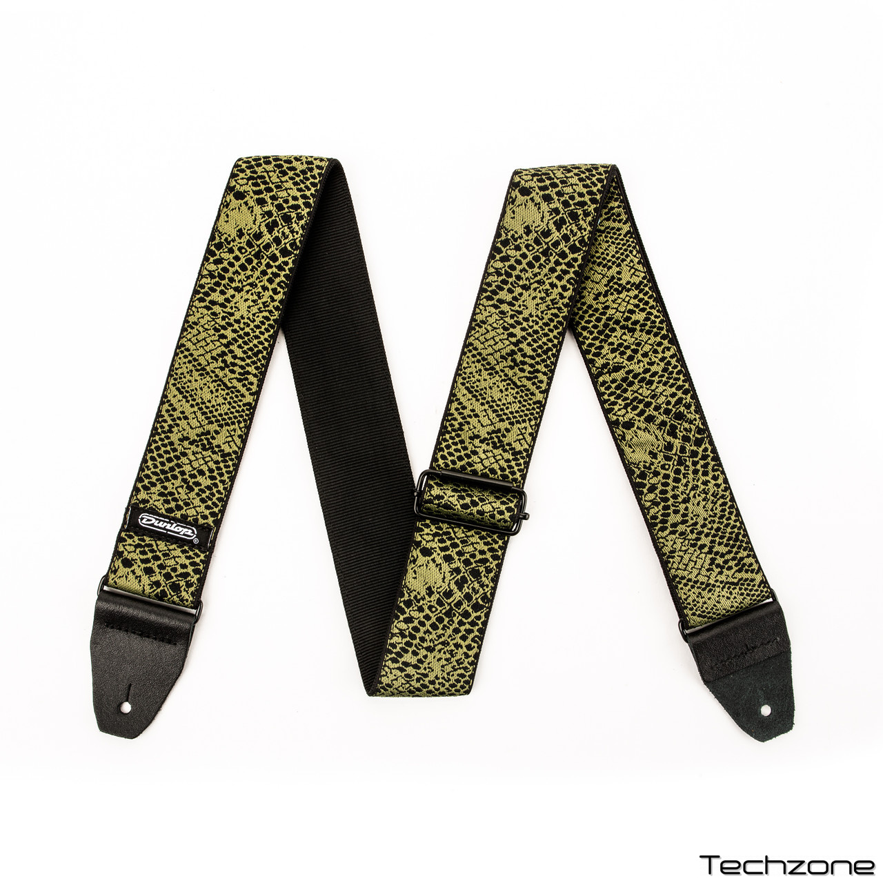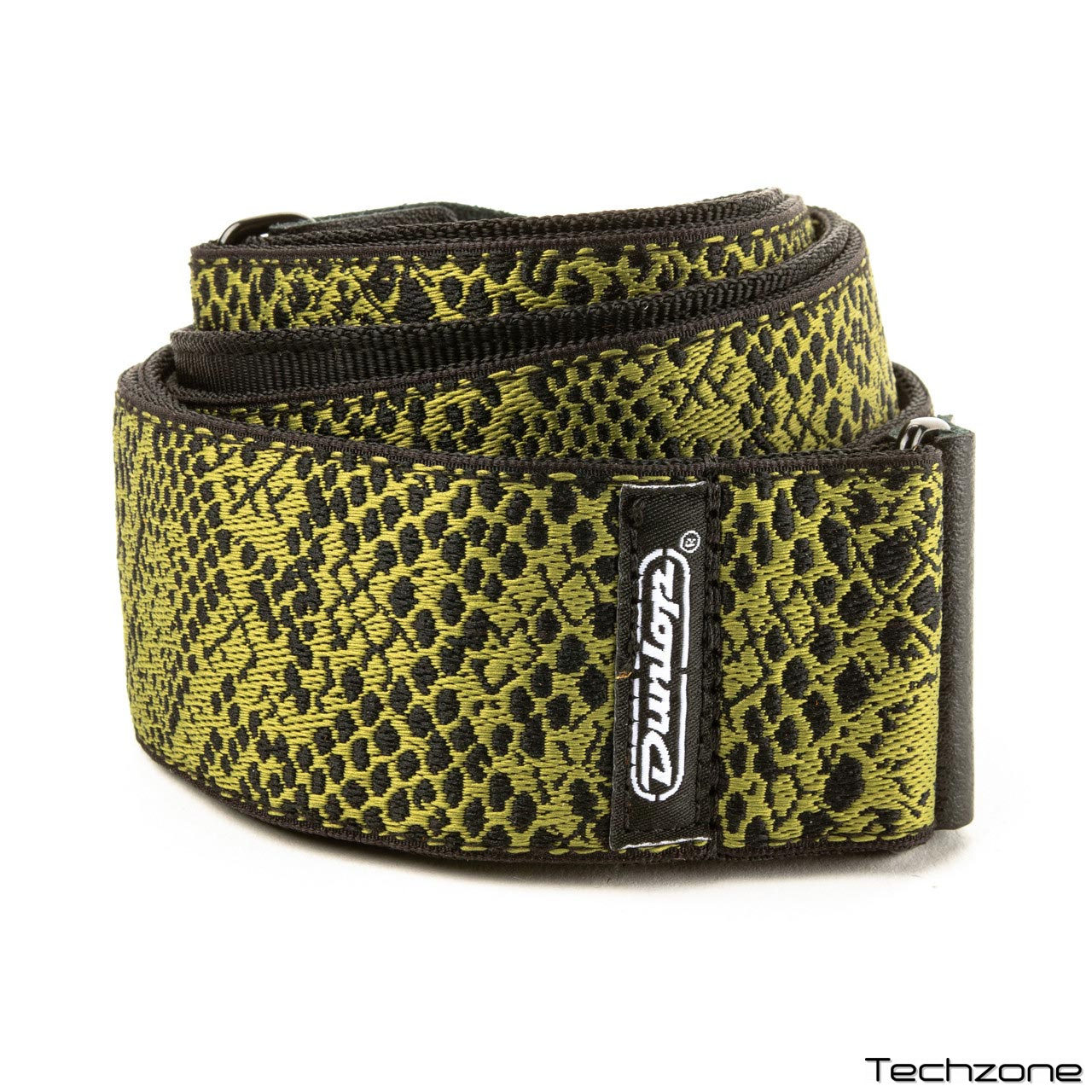 Дизайнерські жакардові ремені Dunlop, виготовлені з комфортної високоякісної жакардової тканини і відрізняються привабливими візерунками, розробленими власними дизайнерами компанії. Кожен ремінь пройшов суворі випробування на розрив з навантаженням понад 90 кілограм і отримав заклепані наконечники з натуральної шкіри, які відмінно підходять, як для використання зі стреплоками, так і без них.