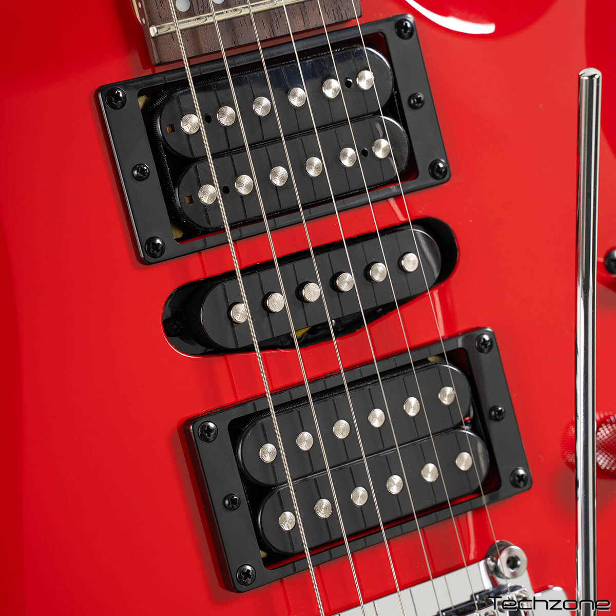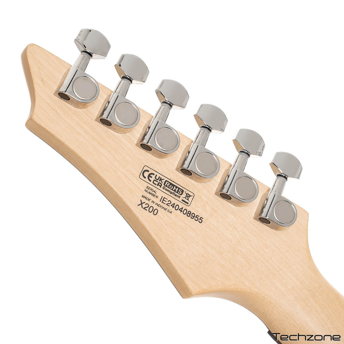 Cort X200 вирізняється тим же неймовірно зручним і ергономічним дизайном, залишаючись при цьому доступною навіть для початківців музикантів. Хижий корпус з тополі зі швидкісним грифом з добірного клена доповнюється двома потужними хамбакерами Powersound, синглом у середній позиції і традиційним тремоло типу Vintage.