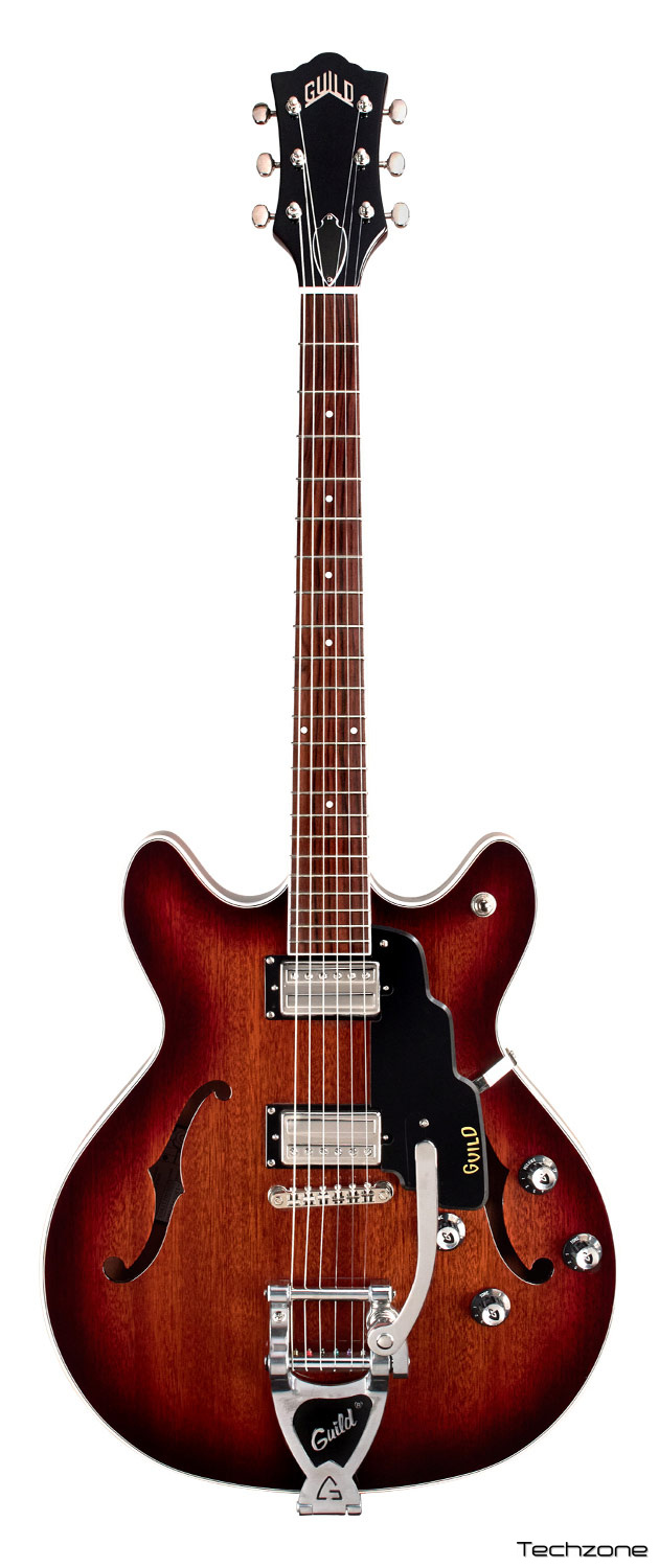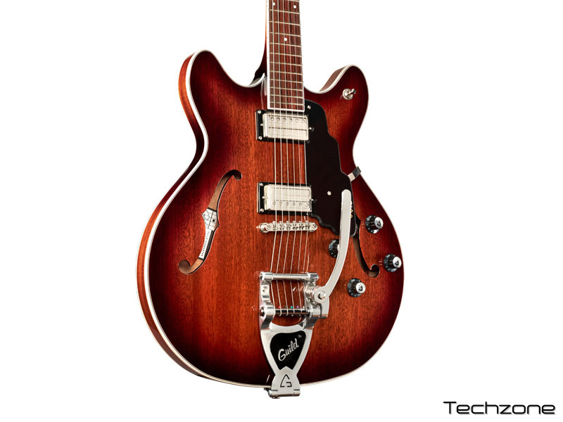 Корпус цієї гітари отримав традиційну форму з двома вирізами, засновану на легендарній моделі Guild Starfire. Частково порожня кленова конструкція з центральним блоком із червоного дерева дозволила зберегти прозоре об'ємне звучання, характерне для легендарних напівакустичних електрогітар Guild, водночас збільшуючи сустейн та знижуючи ймовірність виникнення акустичного зворотного зв'язку (фідбеку). Традиційна довжина мензури 24,75" та сучасний тонкий U-подібний профіль грифа забезпечують чудовий комфорт при грі, а два фірмових хамбакери HB-2 видають насичене вінтажне звучання.