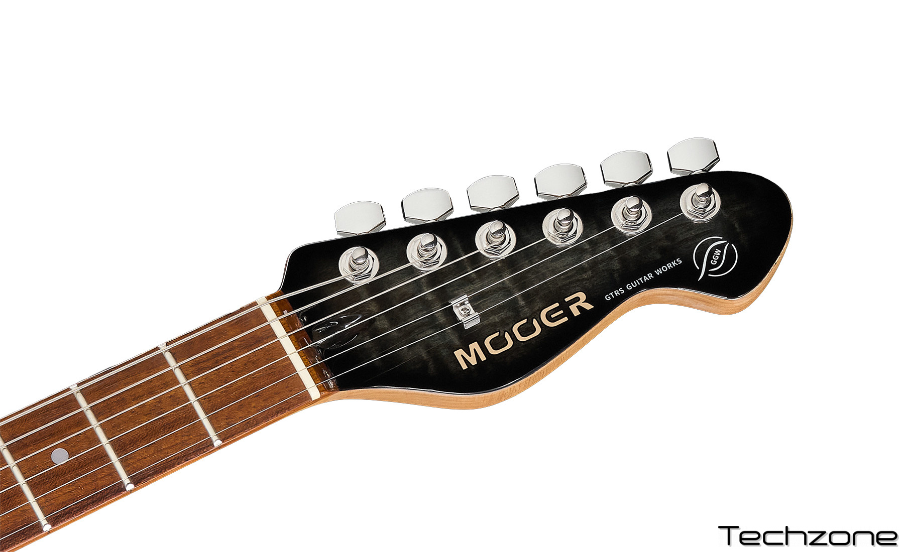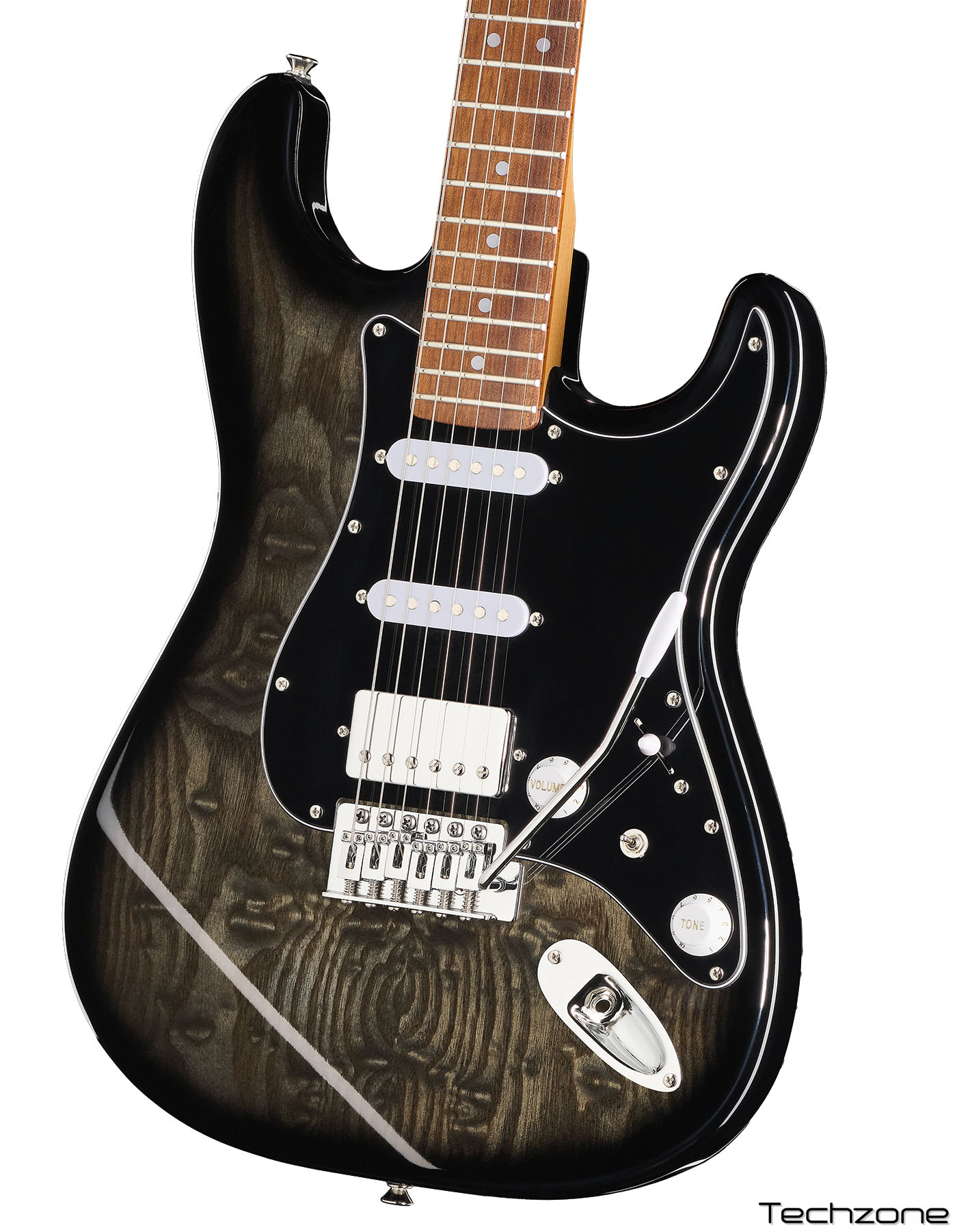 Наприклад, корпус з тополі та ясеня доповнюється грифом C-подібного профілю з roasted клена з красивим сатинованим оздобленням, — поєднання, яке дуже рідко можна побачити. Клен roasted славиться своєю структурною стабільністю та резонансною послідовністю, тому його зазвичай можна зустріти лише у дорожчих моделях.