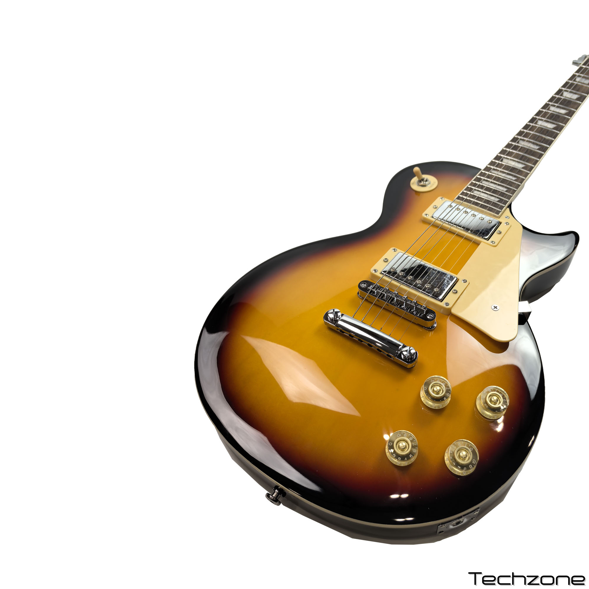 Технічні характеристики : Модель: Toneberg TELP-100 Форма: Les Paul Фініш: Глянцевий Корпус: Махагоні Гриф: Махагоні Накладка на гриф: Палісандр Профіль грифа: C Кількість ладів: 22 Звукознімачі: H-H Брідж: Фіксований Струни: Пластик-сталь Колір: Sunburst Комплектація: Гітара, чохол