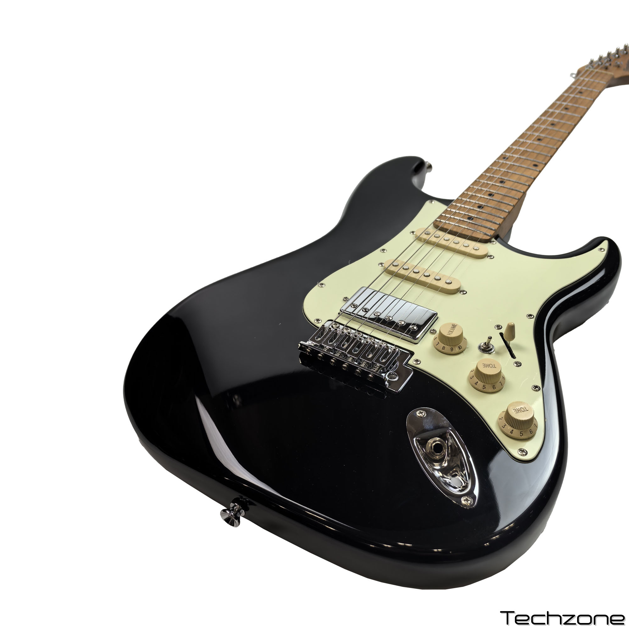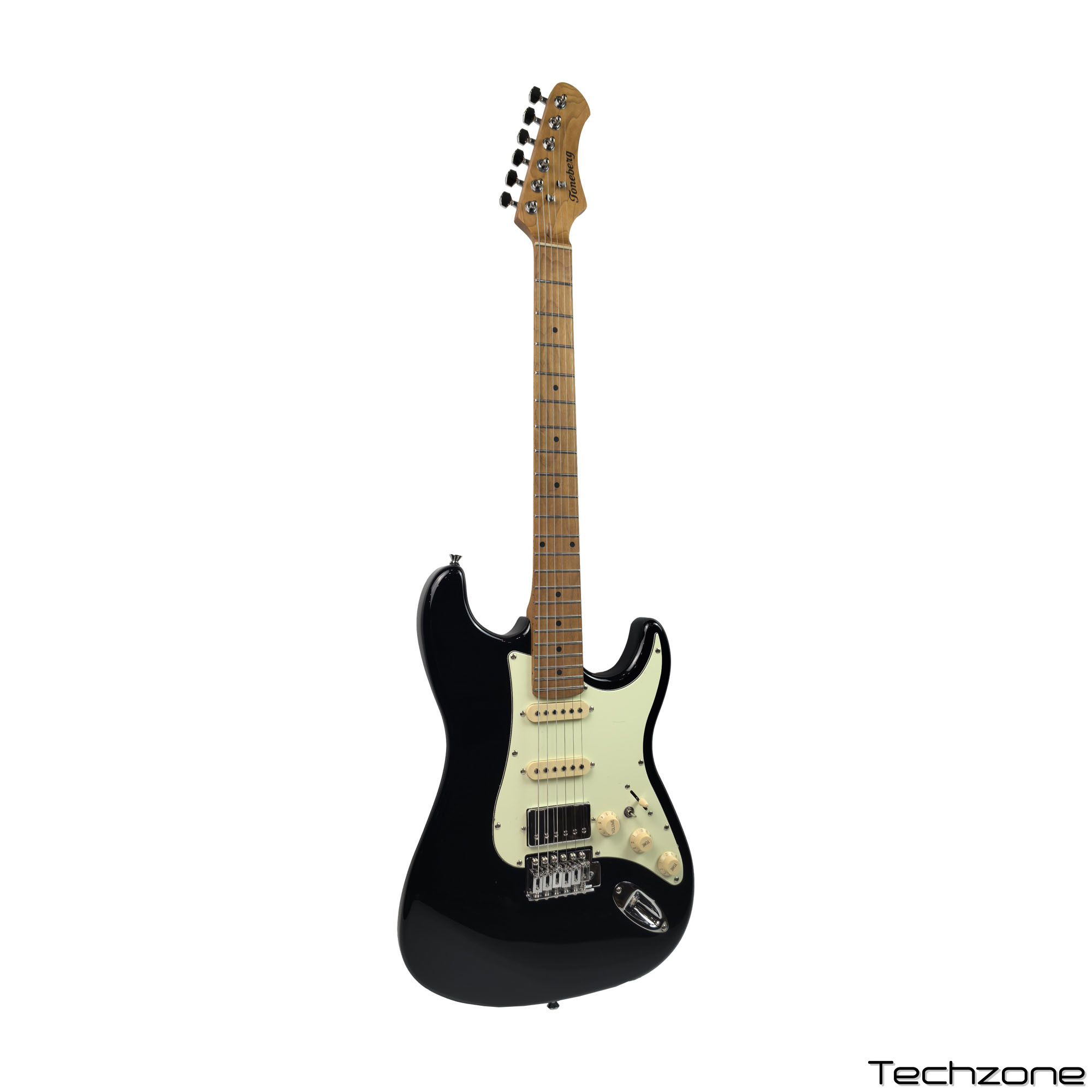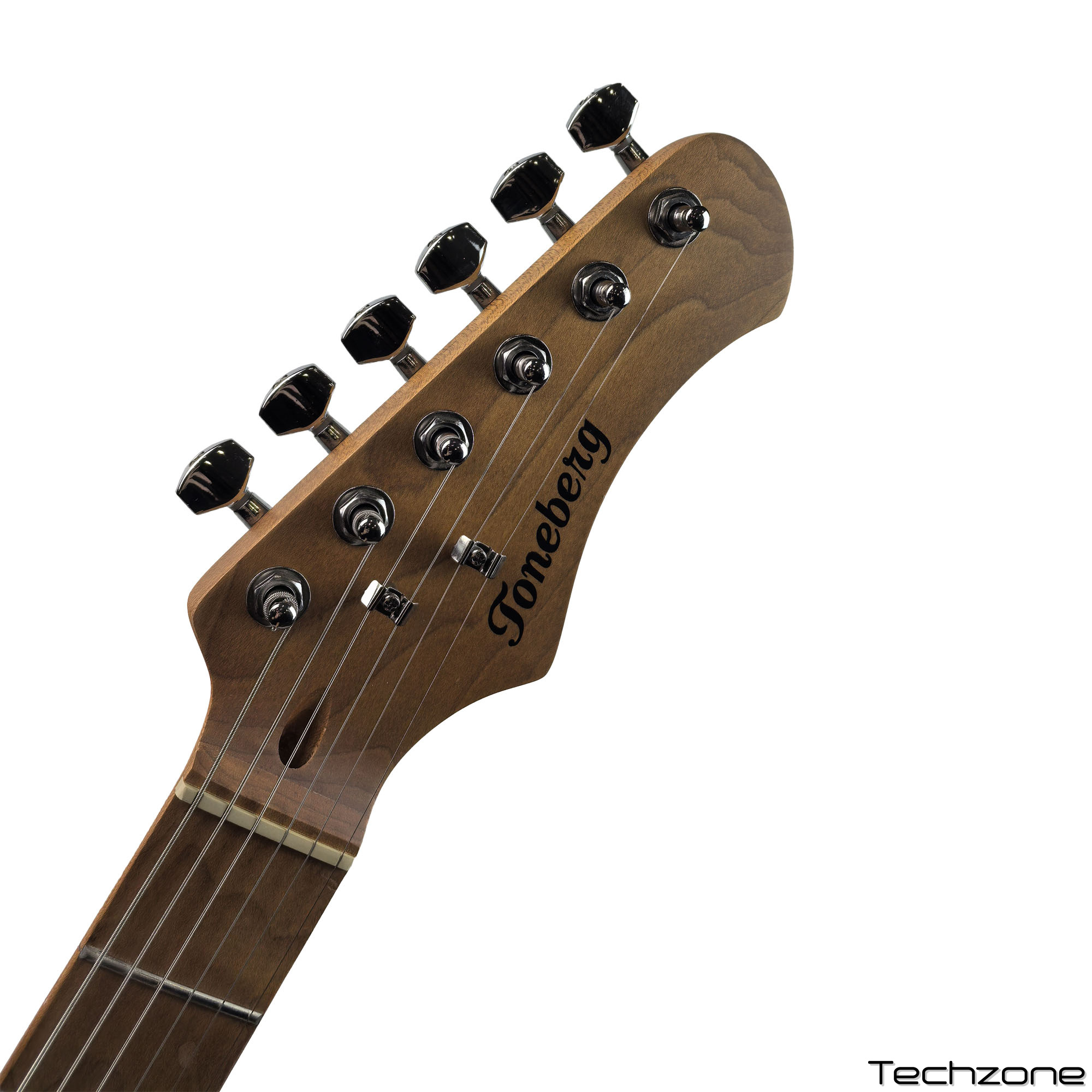 Toneberg TEST-600 — це поєднання легендарної форми Stratocaster та скандинавського підходу до якості, де важлива кожна деталь. Бренд Toneberg народився з ідеї створити преміальний інструмент, доступний кожному музиканту, і ця модель яскраво втілює цю філософію. Легкий корпус із тополі забезпечує комфорт під час гри та збалансований тон, а гриф і накладка з термообробленого клена додають стабільності, покращують резонанс і дарують впевненість у кожній ноті. Конфігурація звукознімачів S-S-H робить інструмент універсальним: від кришталево чистого звучання для джазових імпровізацій до насиченого перевантаження для рокових рифів. Тремоло-бридж надає грі виразності та динаміки, а надійна хромована фурнітура витримує роки активної експлуатації. Toneberg TEST-600 — це інструмент, який поєднує скандинавську надійність, стильний дизайн і натхненне звучання.