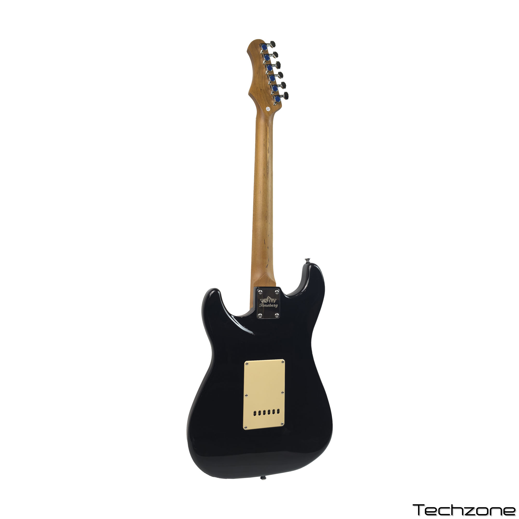 Технічні характеристики Модель: Toneberg TEST-600 Форма: Stratocaster Покриття: Глянцеве Корпус: Тополя Гриф: Термооброблений клен (Roasted Maple) Накладка грифа: Термооброблений клен (Roasted Maple) Кількість ладів: 22 Звукознімачі: S-S-H Бридж: Тремоло Струни: Пластик-сталь Регулятори: 1 гучність, 2 тони Перемикачі: 5-позиційний перемикач звукознімачів, міні-перемикач (S/H) ×1 Фурнітура: Хромована, повністю закрита Колір: Чорний Профіль грифа: C