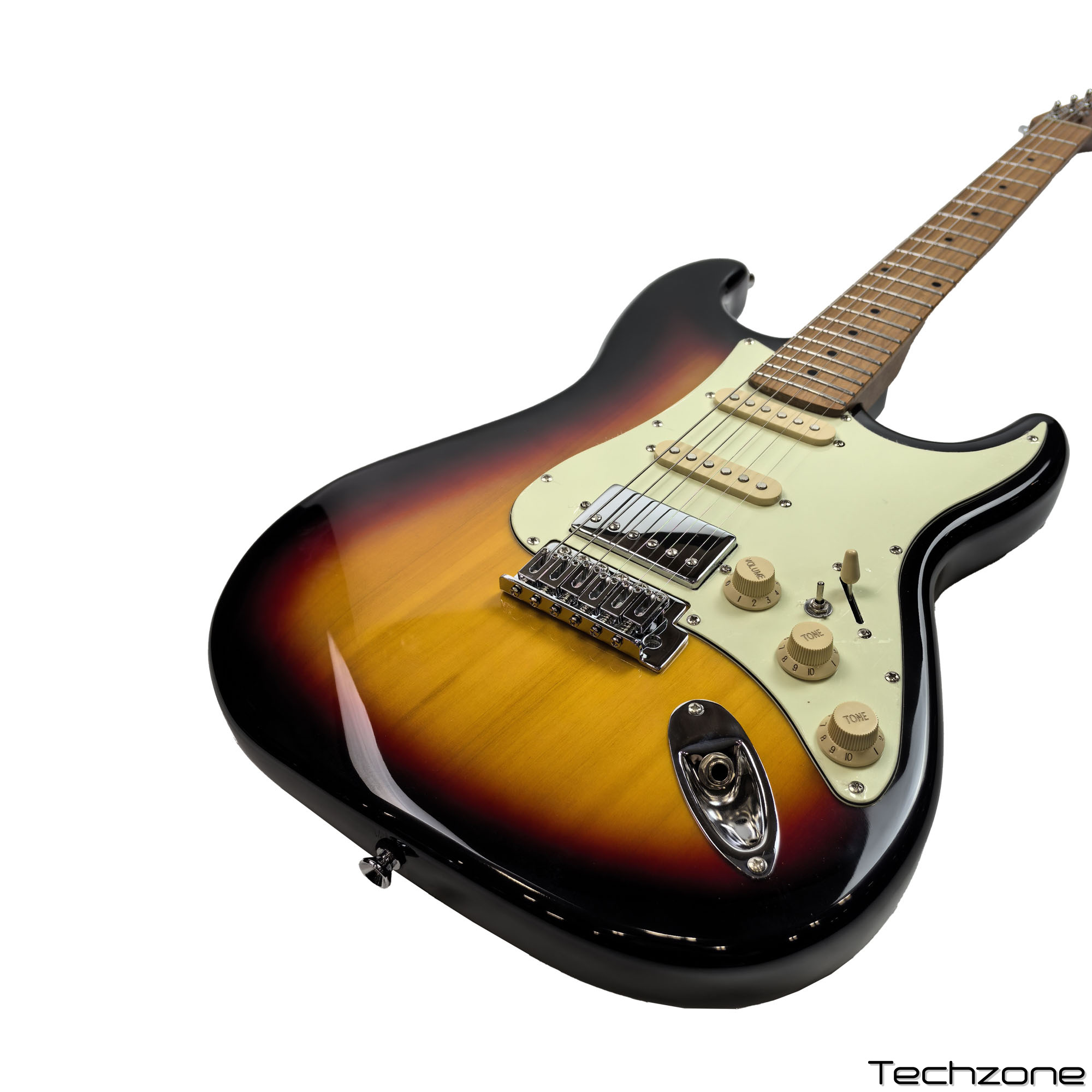 Toneberg TEST-600 — це поєднання легендарної форми Stratocaster та скандинавського підходу до якості, де важлива кожна деталь. Бренд Toneberg народився з ідеї створити преміальний інструмент, доступний кожному музиканту, і ця модель яскраво втілює цю філософію. Легкий корпус із тополі забезпечує комфорт під час гри та збалансований тон, а гриф і накладка з термообробленого клена додають стабільності, покращують резонанс і дарують впевненість у кожній ноті. Конфігурація звукознімачів S-S-H робить інструмент універсальним: від кришталево чистого звучання для джазових імпровізацій до насиченого перевантаження для рокових рифів. Тремоло-бридж надає грі виразності та динаміки, а надійна хромована фурнітура витримує роки активної експлуатації. Toneberg TEST-600 — це інструмент, який поєднує скандинавську надійність, стильний дизайн і натхненне звучання.