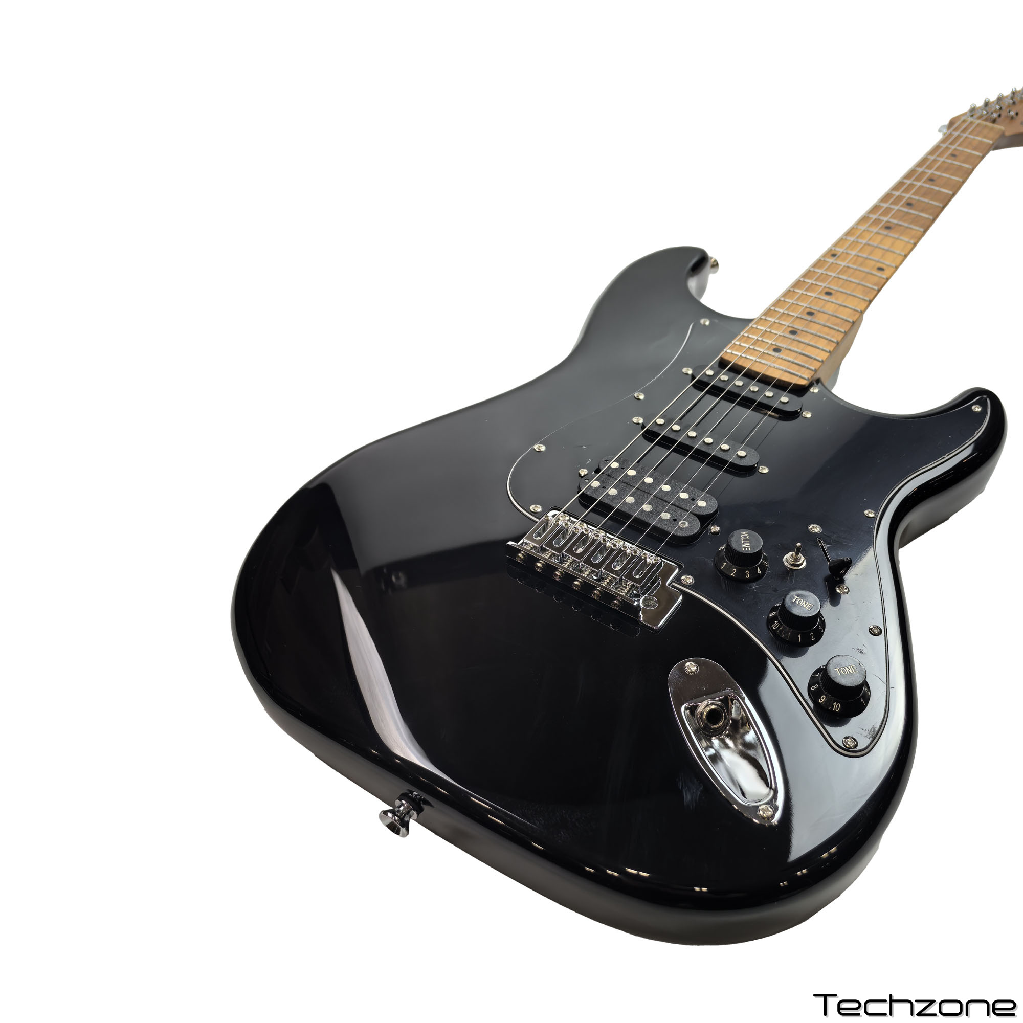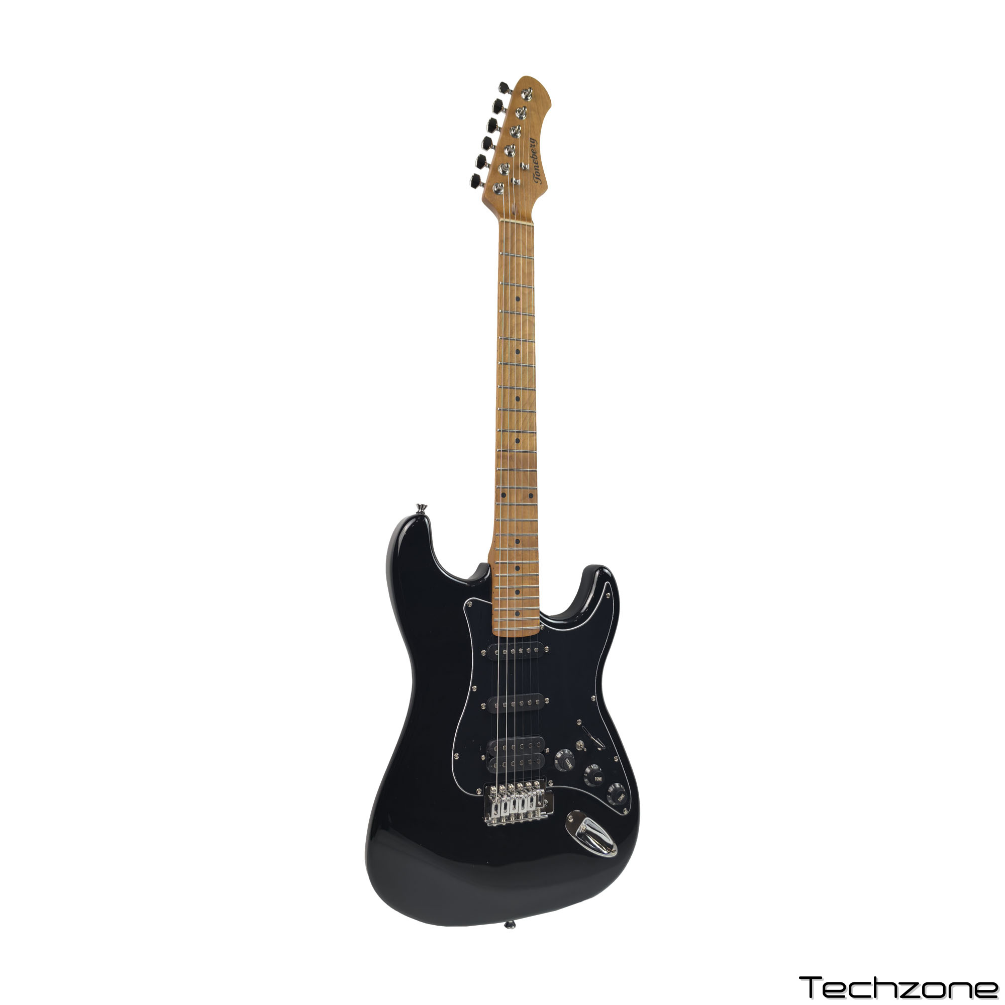 Технічні характеристики: Модель: Toneberg TEST-610 Форма: Stratocaster Покриття: Глянцеве Корпус: Тополя Гриф: Термооброблений клен (Roasted Maple) Накладка грифа: Термооброблений клен (Roasted Maple) Кількість ладів: 22 Звукознімачі: S-S-H Бридж: Тремоло Струни: Пластик-сталь Регулятори: 1 гучність, 2 тони Перемикачі: 5-позиційний перемикач звукознімачів, міні-перемикач (S/H) ×1 Фурнітура: Хромована, повністю закрита Колір: Чорний Профіль грифа: C