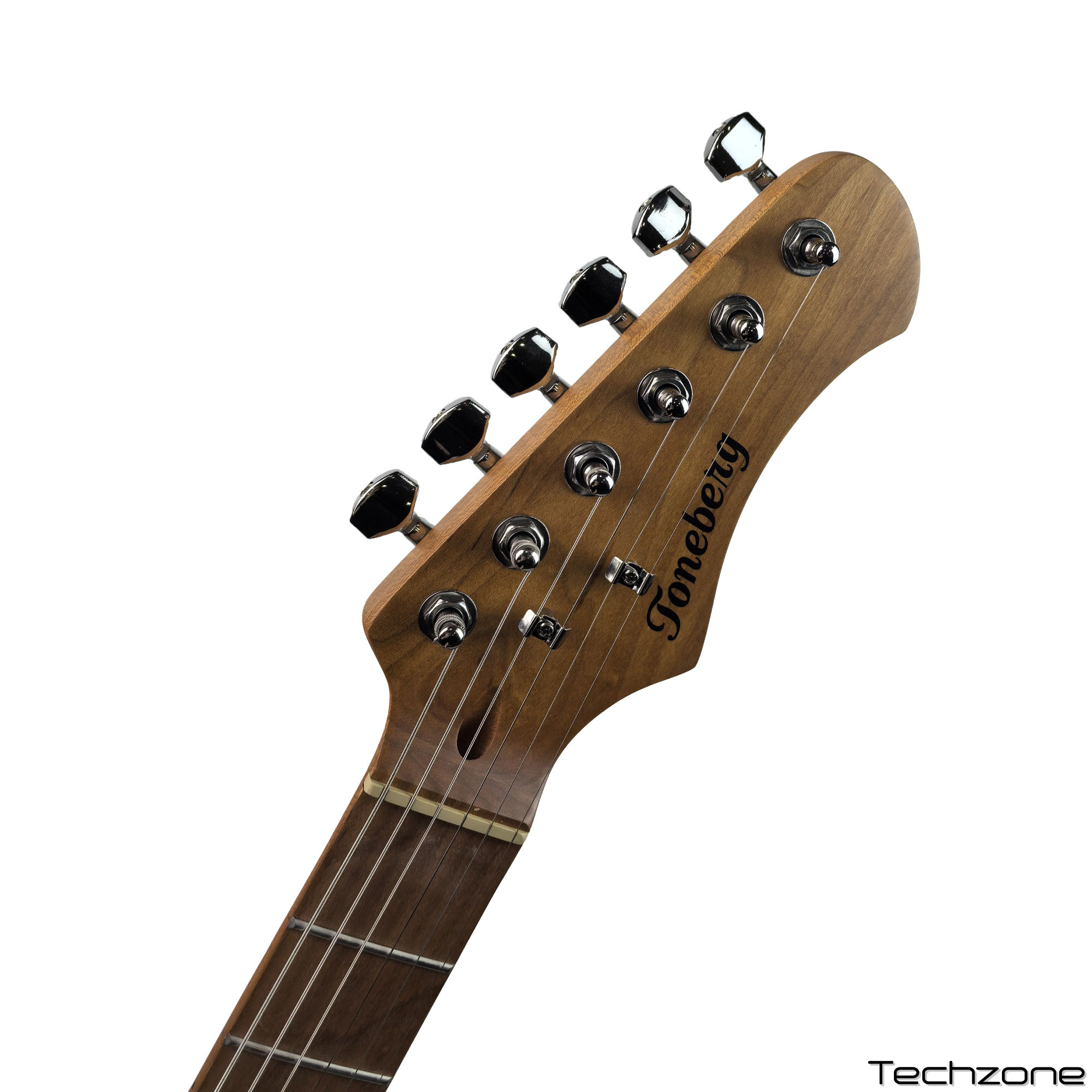 Технічні характеристики: Модель: Toneberg TEST-610 Форма: Stratocaster Покриття: Глянцеве Корпус: Тополя Гриф: Термооброблений клен (Roasted Maple) Накладка грифа: Термооброблений клен (Roasted Maple) Кількість ладів: 22 Звукознімачі: S-S-H Бридж: Тремоло Струни: Пластик-сталь Регулятори: 1 гучність, 2 тони Перемикачі: 5-позиційний перемикач звукознімачів, міні-перемикач (S/H) ×1 Фурнітура: Хромована, повністю закрита Профіль грифа: C Комплектація: чохол