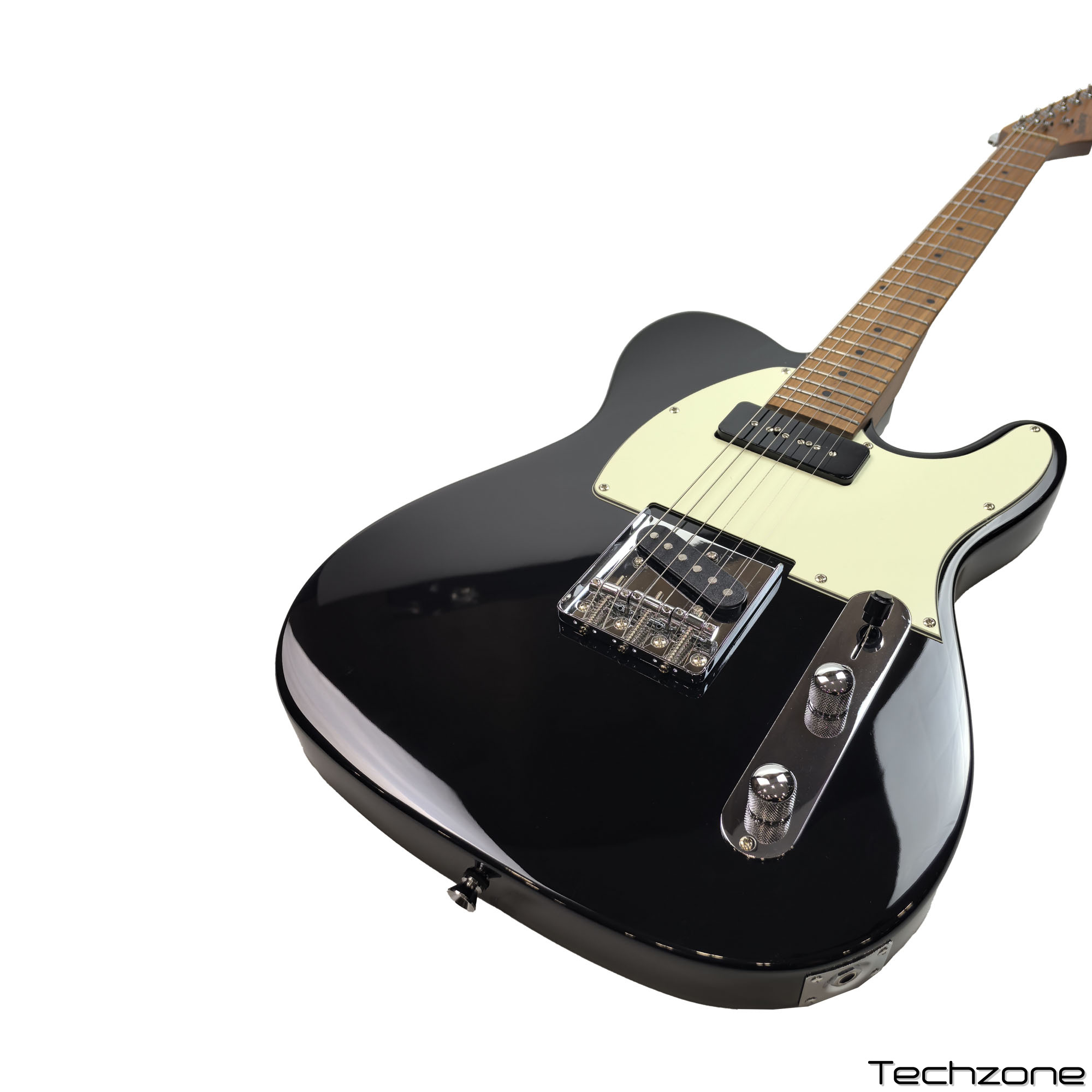 Toneberg TETL-400 BK — це гітара без компромісів. Її культова форма Telecaster уособлює енергію рок-н-ролу та драйв сцени. Глянцеве чорне покриття під світлом прожекторів виглядає як броня, готова витримати будь-яку музичну битву. Корпус із липи (Basswood) наділяє інструмент збалансованим тоном із чіткими середніми частотами та м’яким низом, що легко пробивається крізь мікс. Гриф і накладка з термообробленого клена (Roasted Maple) додають стабільності, резонансу й відчуття впевненості у грі. Конфігурація звукознімачів S-S дарує універсальність: від чистого прозорого тону до виразних рифів і блюзових соло. Фіксований бридж гарантує стабільність строю навіть при агресивній подачі, а пластик-сталеві струни забезпечують комфортну гру. Toneberg TETL-400 — це інструмент, який поєднує силу, стиль і натхнення. Від репетиційної кімнати до великої сцени — він завжди готовий звучати потужно та впевнено.