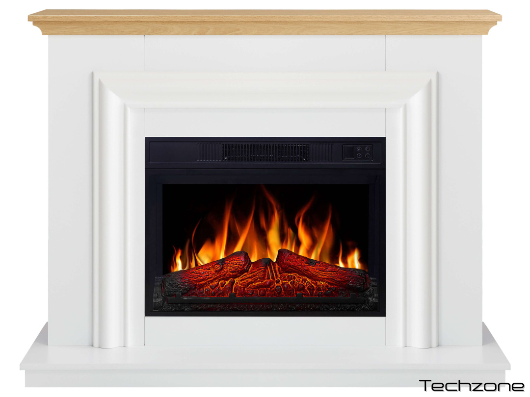Ефект полум’я ідеально відтворює справжній вогонь. Реалістичний муляж полін і звук горіння вогню створюють максимальну подібність з дров’яним каміном. Широке панорамне скло забезпечує чудовий огляд з різних кутів.