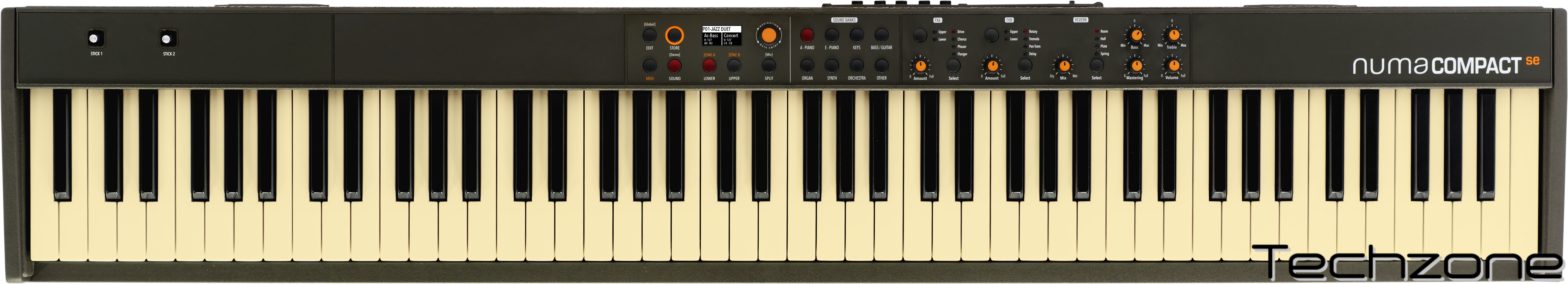 Сценічне піаніно. 88 напівзважених двухсенсорних клавіш (TP / 9 PIANO) з функцією Aftertouch. 4 режими чутливості клавіш. Максимальна поліфонія 200 голосів. 148 звуків. До 6 одночасних ефектів. 120 програм, 1GB пам'яті для семплів. Функція нашарування 2х звуків або поділу клавіатури. Акустична система 10 + 10W. Контролери висоти тону і модуляції. 2 аудіо виходи, вхід для навушників. Вхід для педалі експресії. MIDI: вхід, вихід. USB: MIDI передає по USB. Розміри і вага: 127 х 23 х 10 см, 7,1 кг. Комплектація: Numa Compact SE, блок живлення, USB кабель.