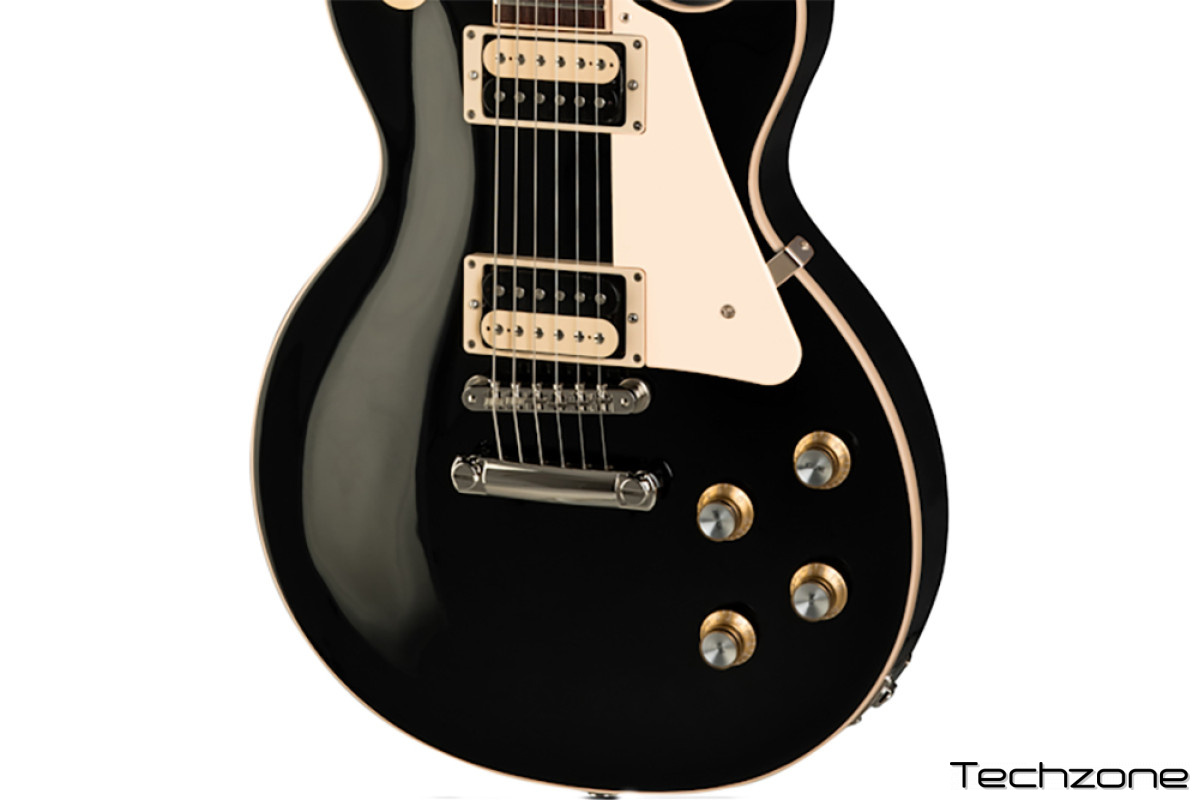 Gibson Les Paul Classic Ebony– електрогітара, форма корпусу – Les Paul, матеріал корпусу – махагоні з топом з клену, гриф – махагоні з накладкою палісандр, профіль грифу – SlimTaper, радіус – 12", лади – 22 Medium Jumbo, мензура – 24.75", звукознімачі (H-H) – 60s Burstbucker (Zebra), колір – чорний, кейс в комплекті.Класичні вібрації та сучасне звучанняGibson Les Paul Classicпоєднує в собі модельLes Paulпочатку 60-х років з деякими перевіреними часом функціональними модифікаціями. Як і передбачалося,Les Paul Classicмає нижню деку з махагоні та верхню деку з клена в поєднанні з грифом SlimTaper з махагоні і палісандровою накладкою. Звукознімачі Burstbucker зебра 60-х років з відкритою котушкою забезпечують класичні тониGibsonтієї епохи з додатковою потужністю завдяки відкритій котушці. Система управління оснащена 4-ма кнопками, які забезпечують можливість вибору режиму перемикання котушок, фазового перемикання і чистого байпасування для функціонального та універсального звучання.