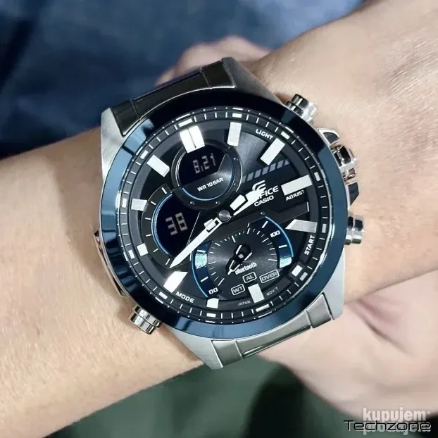 Ласкаво просимо в еволюцію швидкості та інтелекту - високотехнологічний металевий хронограф EDIFICE з бездоганним стилем і зручним підключенням до смартфона. Ця модель дає змогу легко синхронізуватися зі смартфоном через Bluetooth® і під'єднатися до застосунку CASIO WATCHES для повної функціональності на відстані витягнутої руки. Додаток забезпечує точний хронометраж без використання кнопок, коли телефон знаходиться поруч. Розроблений з урахуванням потреб перегонових команд, таймер розкладу синхронізується з додатком календаря вашого смартфона, щоб передавати на телефон пункти розкладу і відображати час початку і закінчення на РК-дисплеї годинника. Годинник оснащений світлодіодним підсвічуванням, яке спалахує при одному лише нахилі зап'ястя. Натхненний спортивним автомобілем, дизайн механічного циферблата збільшує глибину і розмірність, щоб передати динамічний вигляд, силу і міцність цих високопродуктивних автомобілів.
