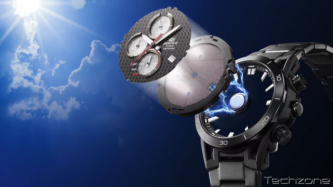 Сонячні панелі, що втілюють концепцію високопродуктивного автоспорту, ретельно розроблені таким чином, щоб пропускати багато світла через невеликі отвори у врізаних циферблатах, генеруючи достатньо енергії, щоб цей годинник працював у звичайному режимі протягом приблизно п'яти місяців після повної зарядки.