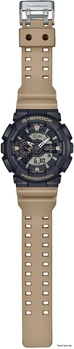 Ці повністю функціональні та стильні годинники G-SHOCK поєднують у собі функціональність та довговічність. Чорний циферблат поєднується з бежевим або оливково-зеленим ремінцем, кольорова гама якого нагадує преміальний набір. Оберіть одну з п'яти базових моделей: культовий DW-6900 з його фірмовим потрійним графіком, великий GA-700 (обидві з металевими передніми кнопками з нековзною текстурою) або ще більші моделі GX-56, GA-100 та GA-110.