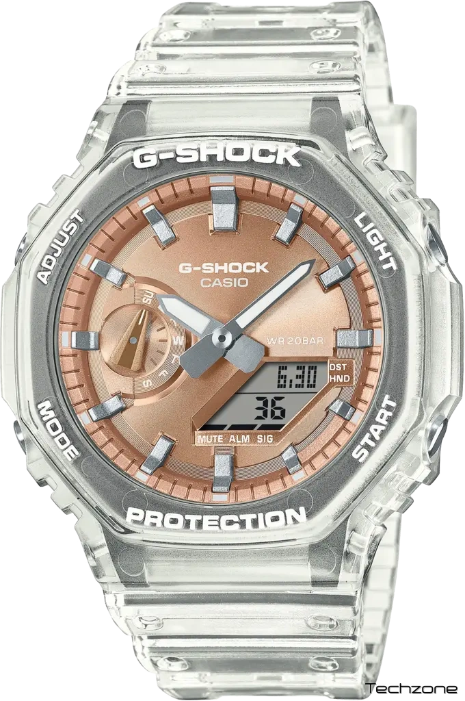 Побудовані на основі культового восьмикутного безелю GA-2100, вони поєднані з напівпрозорими ремінцями для сучасної, елегантної естетики.