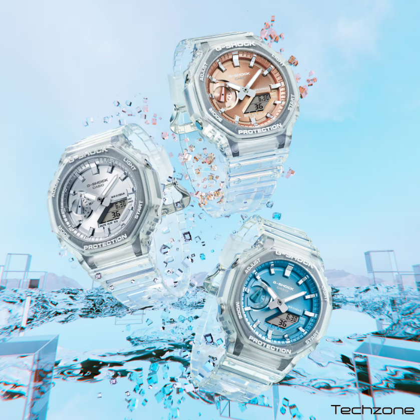 Побудовані на основі культового восьмикутного безелю GA-2100, вони поєднані з напівпрозорими ремінцями для сучасної, елегантної естетики.