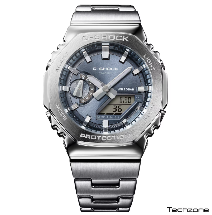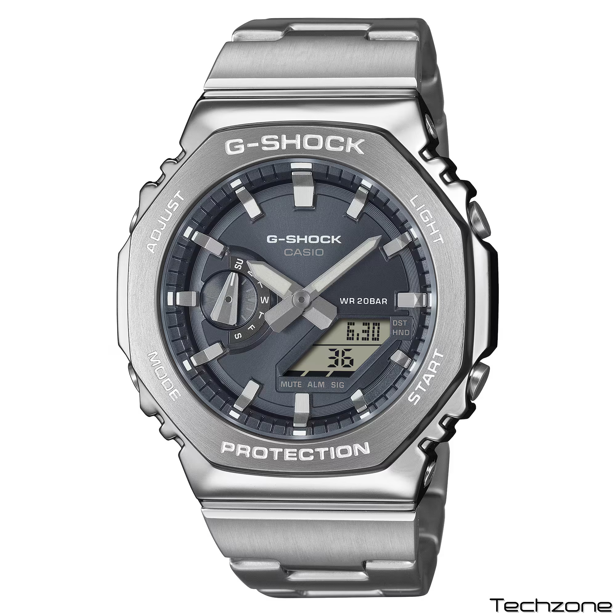 Зверніть увагу на GM-2110D — культовий аналого-цифровий GA-2100, але зі стильним металевим безелем та оновленим ремінцем.