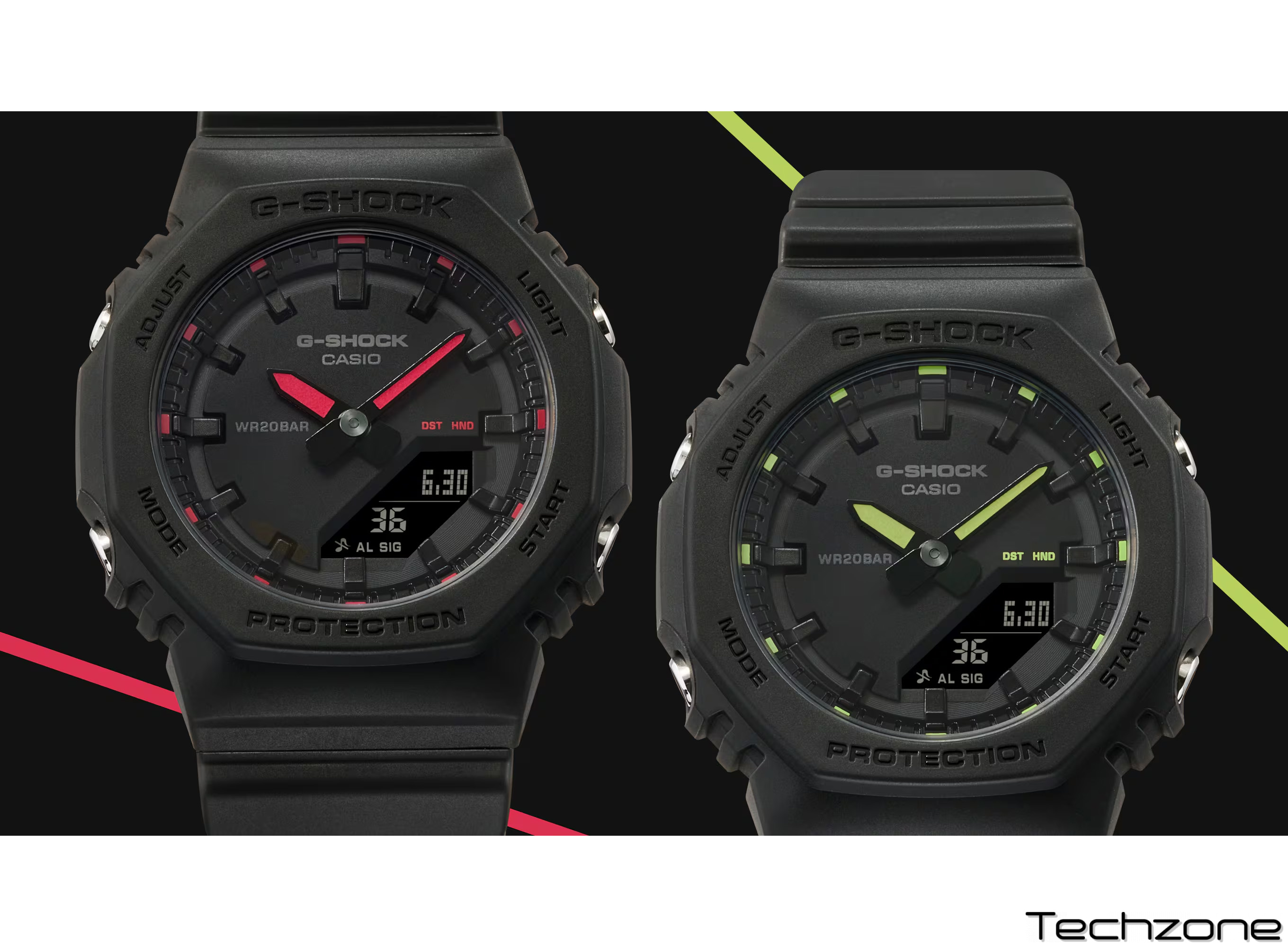 У GMA-P2100SA ми починаємо з класичного чорного та додаємо акценти в яскравих відтінках, натхненних спортивним спорядженням, щоб створити вражаючий контраст, який забезпечує повноцінний спортивний стиль.